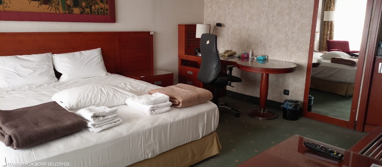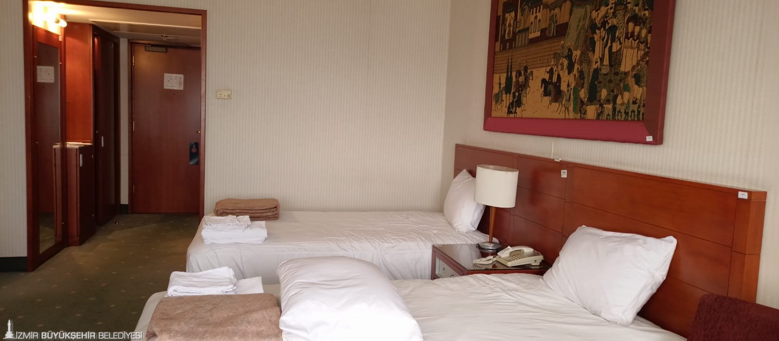 İzmir Büyükşehir Belediyesi, 11 şehirde yıkıma neden olan 6 Şubat depreminin ardından İzmir’e gelen depremzedeleri misafir etmeye devam ediyor. Depremzedelerin geçici barınma sorununu çözmek için İzmir Büyükşehir Belediyesi’nin hissedarı olduğu eskiden Hilton Oteli’nin kullandığı binanın da kapıları depremzedelere açıldı. İzmir Büyükşehir Belediyesi ekipleri tarafından 180 oda depremzedelerin kullanımına hazır hale getirdi. 50 odada 102 kişi misafir edilmeye başlandı.