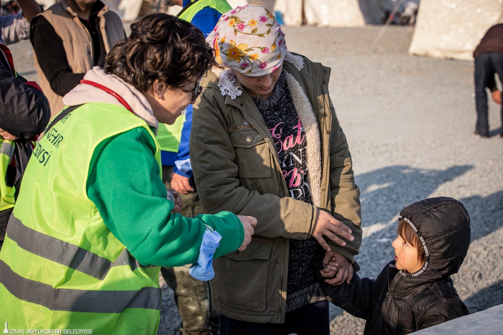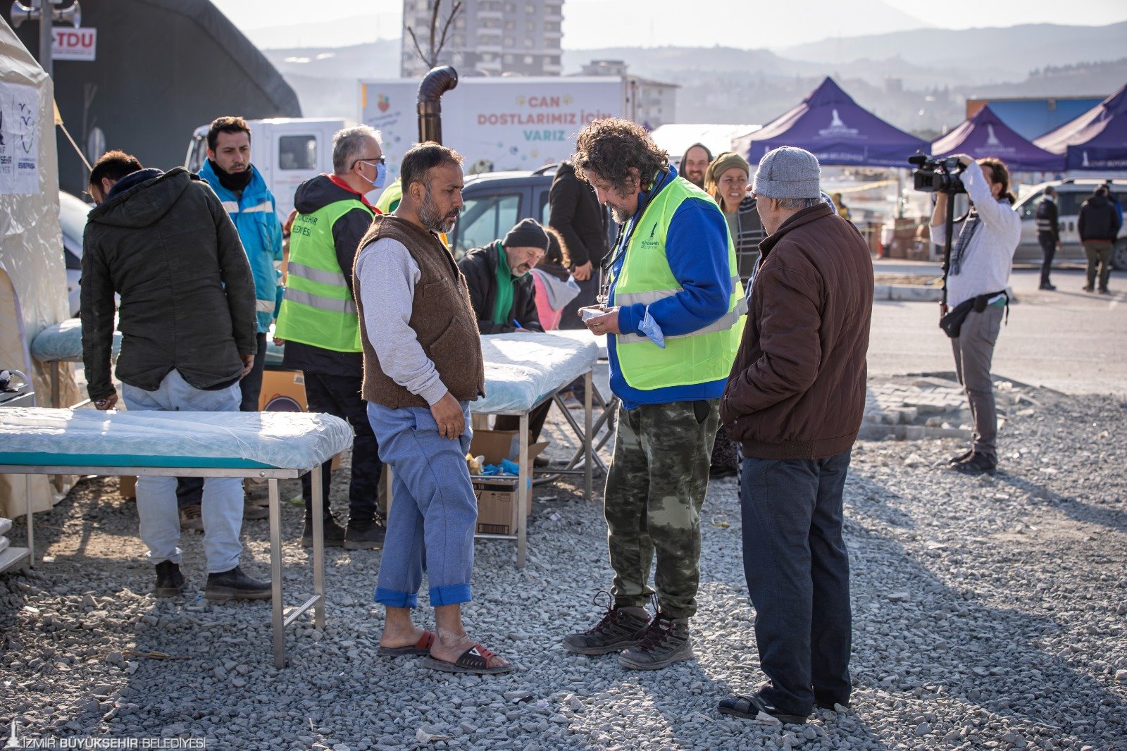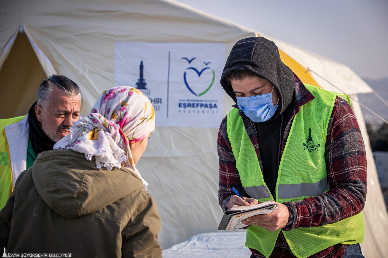 Çadır kentteki sağlık durumu hakkında bilgi veren Eşrefpaşa Hastanesi Enfeksiyon Hastalıkları Uzmanı Öner Özer, “Depremzedelerin sağlığını korumak için buradayız. Salgın hastalıklar en çok yiyecek içecek gibi gıda yoluyla ve yakın temasla bulaşıyor. Fakat aldığımız önlemler sayesinde kış döneminde oluşan normal enfeksiyonlar var. Gıda konusunda belediyemiz bütün aşevi prosedürlerini uyguluyor. Ortak hijyenik bir yemek dağıtım sistemi kuruldu. Bunların dışında daha çok kronik rahatsızlıklar ve psikolojik travmalarda artış var. Bu yüzden de gerekli önlemleri alıyoruz” ifadelerini kullandı.