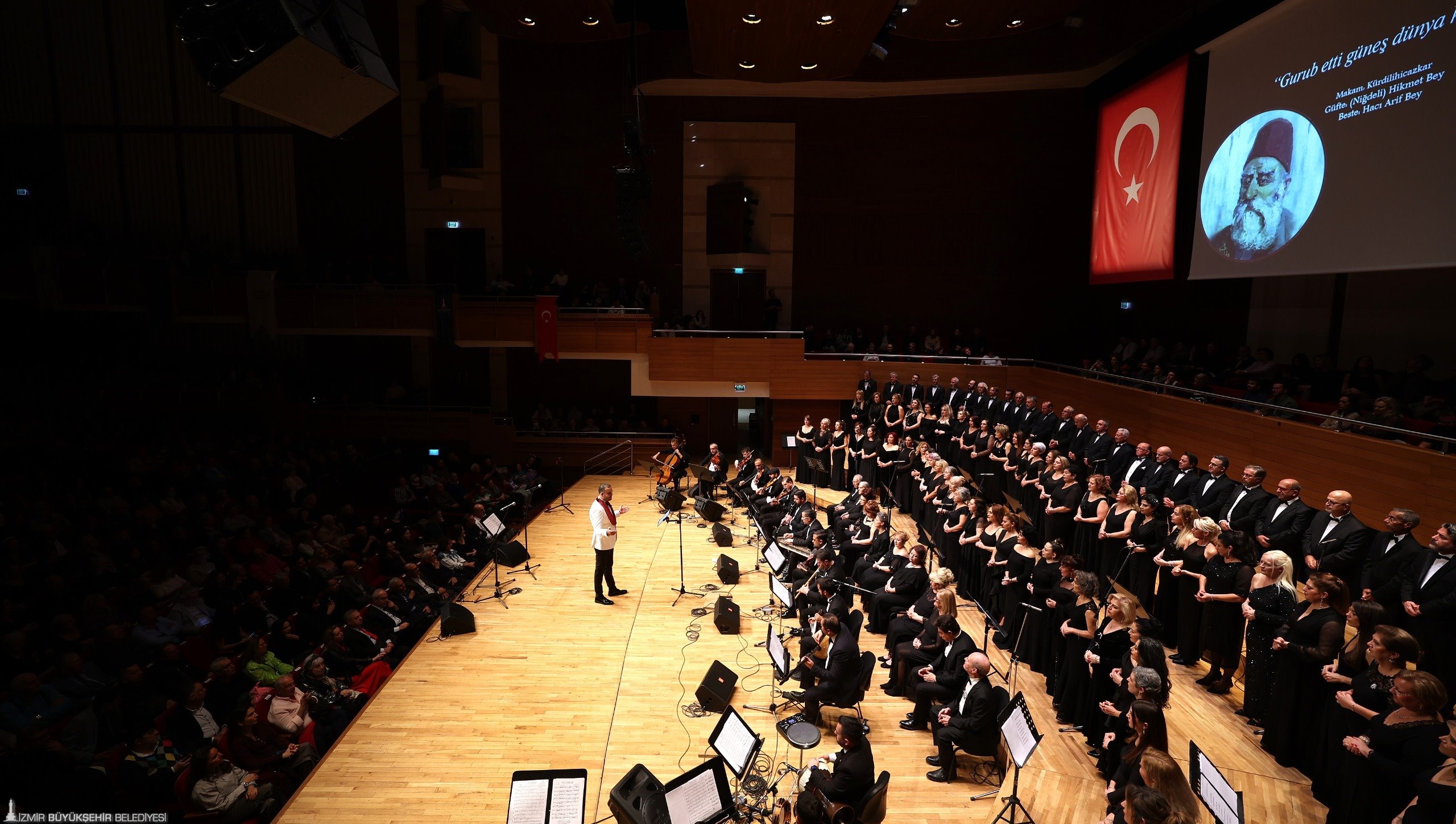 İzmir Büyükşehir Belediyesi Klasik Türk Müziği Korosu'nun sunduğu bu özel etkinlik halka açık ve ücretsiz olarak düzenlenirken, salonu dolduran sanatseverler hep bir ağızdan şarkılara eşlik etti.