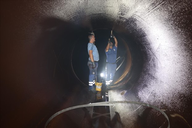 “Güzelhisar (Petkim) Barajı ile Sarıkız ve Göksu Kuyuları’ndan şehrimize su taşıyan 2,2 metre çapındaki ana su isale hattında dün gece büyük bir patlak meydana gelmiştir. Çiğli 9 Eylül Mahallesi’nde yerin 3 metre altında gerçekleşen bu patlağa, ekiplerimiz kısa sürede müdahale etmiştir. Öncelikle ana isale hattındaki su boşaltılma işlemi başlatılmış ve eş zamanlı olarak vatandaşlarımıza SMS ve sosyal medya hesapları aracılığıyla bilgilendirme yapılmıştır. Su boşaltma işleminin ardından ekiplerimiz, en yakın baca noktasından girerek, yer altından 470 metre ilerleyerek arızaya müdahale etmiştir. Arızalanan hattaki boru çapının büyüklüğü ve teknik özelliklerine uygun olarak boru içinden ve dışından başlatılan onarım işlemleri gece boyunca devam etmiş ve çalışma tamamlanmıştır. 42 km uzunluğunda ve 2,2 metre çapındaki isale hattına verilecek suyun uygun seviyeye gelmesinin ardından, bu gece saat 22.00’de vatandaşlarımıza suyu ulaştırmayı hedeflemekteyiz.”