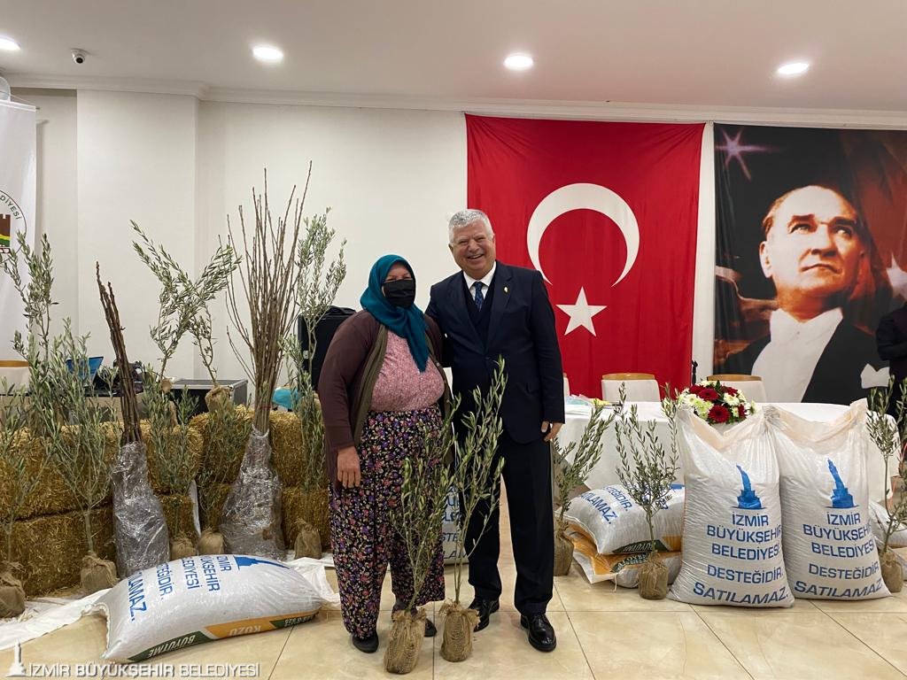 Boş tarım arazilerini ekonomiye kazandırmak ve ilçelerde tarımsal çeşitliliği artırmak amacıyla meyve fidanı desteğini sürdüren Büyükşehir Belediyesi, Beydağ’ın 25 mahallesinde 764 üreticiye 11 bin 890 adet badem, kiraz, ceviz, incir, kestane ve Trabzon hurması fidanı da dağıttı. Büyükşehir, bugüne kadar İzmir genelinde yaklaşık 5 milyon meyve ve zeytin fidanı hibe etti.