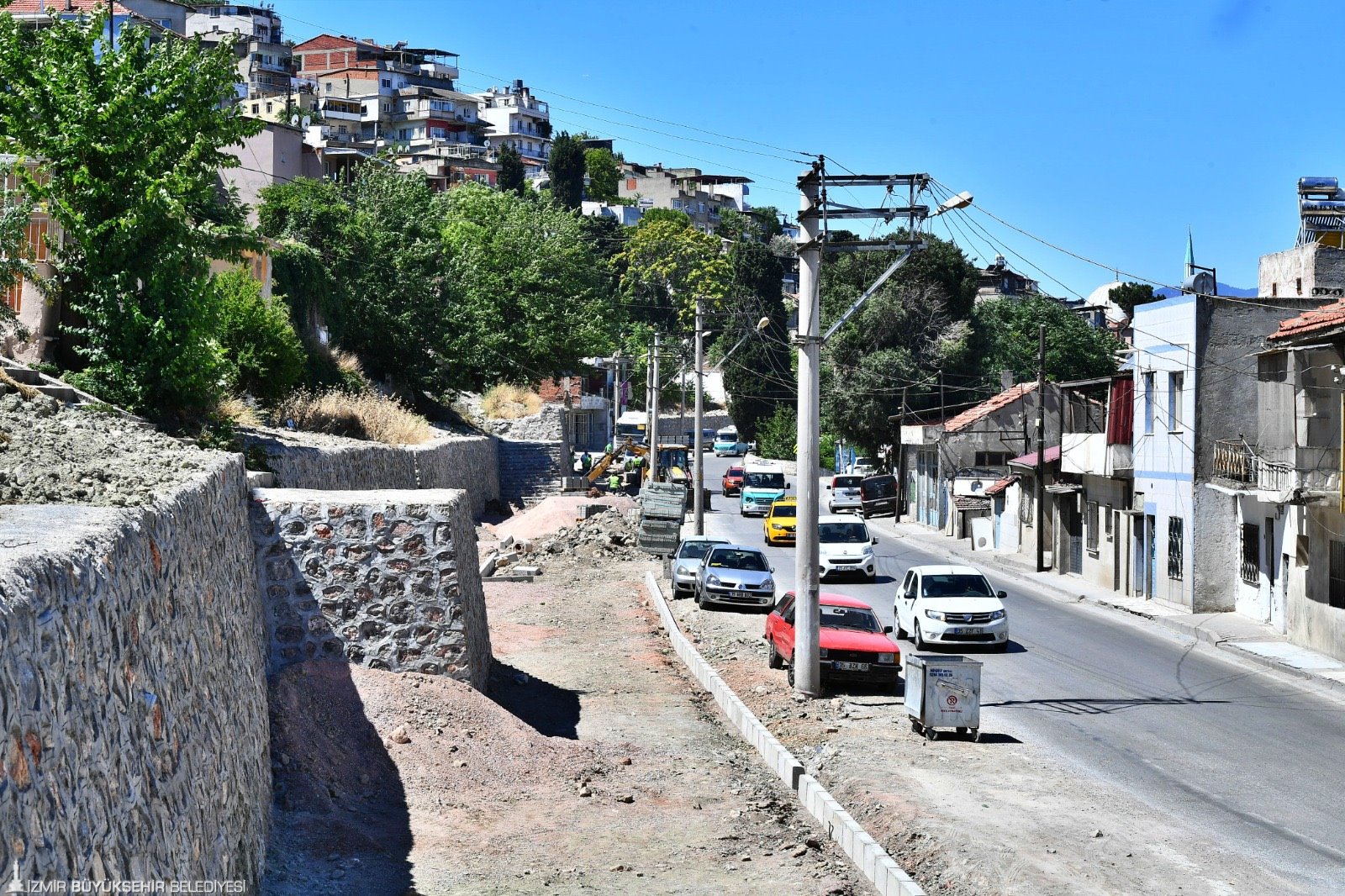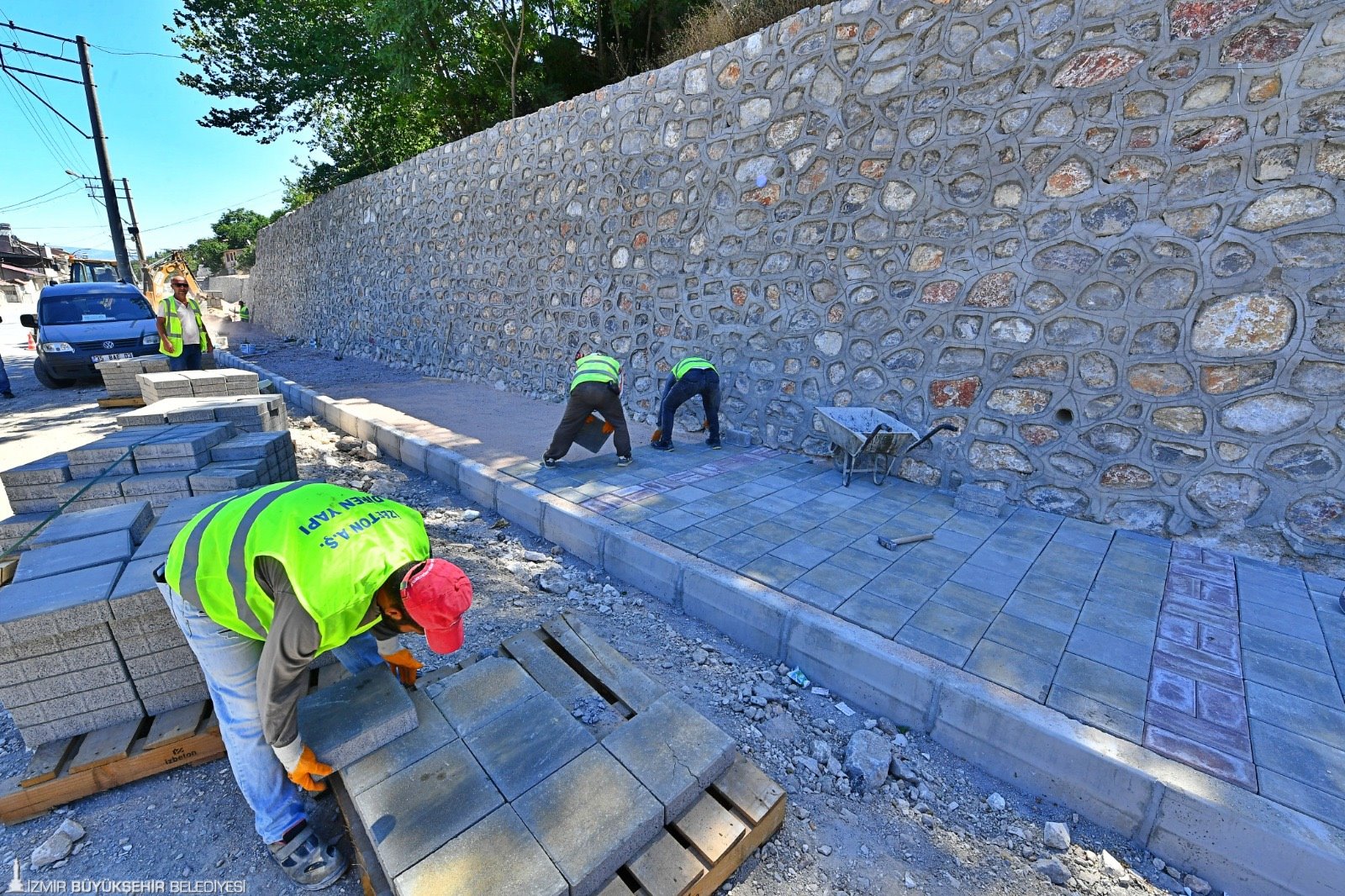 Buca'ya araç giriş çıkışını da önemli ölçüde rahatlatacak çalışmalar kapsamında Fen İşleri Dairesi Başkanlığı ve İZBETON ekipleri 800 metre uzunluğunda taş duvar, 5 merdiven, bin 300 metrekare alanda karo taş ve bordür imalatını tamamladı. Toplam 4 bin 400 metrekare çift taraflı kaldırım ve aydınlatma imalatı ise sürüyor. Düzenleme çalışmaları tamamlandıktan sonra caddeye asfalt serilecek.