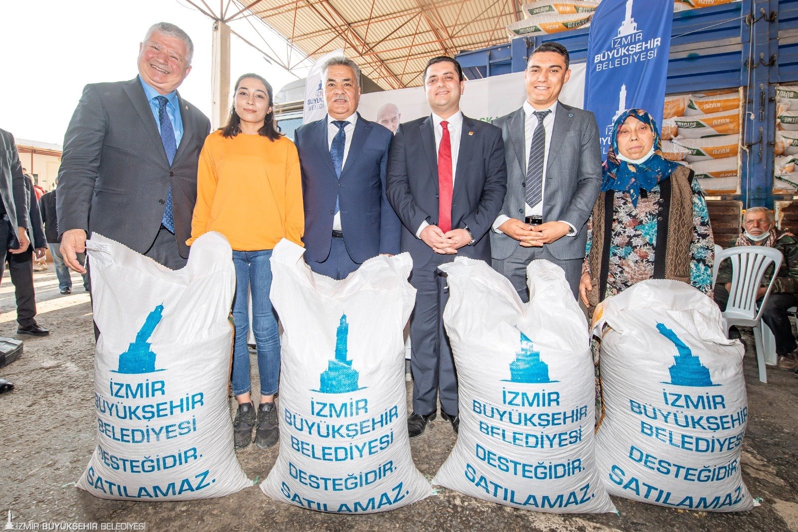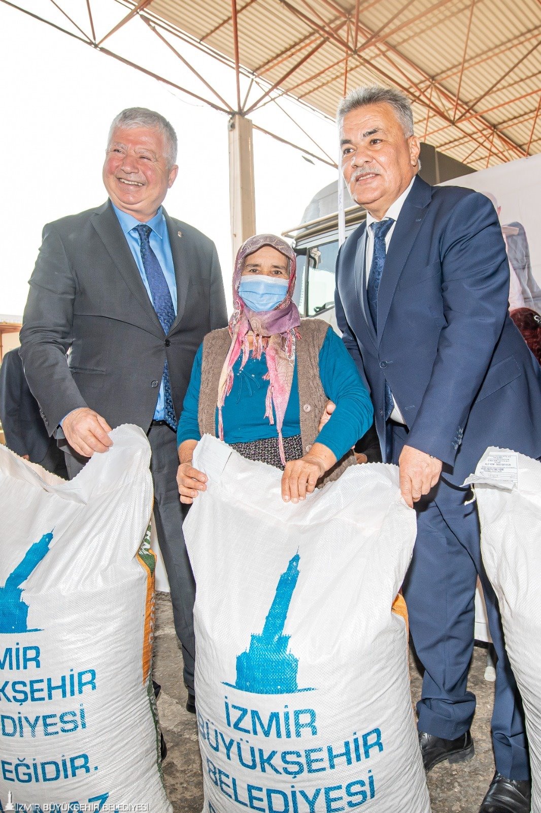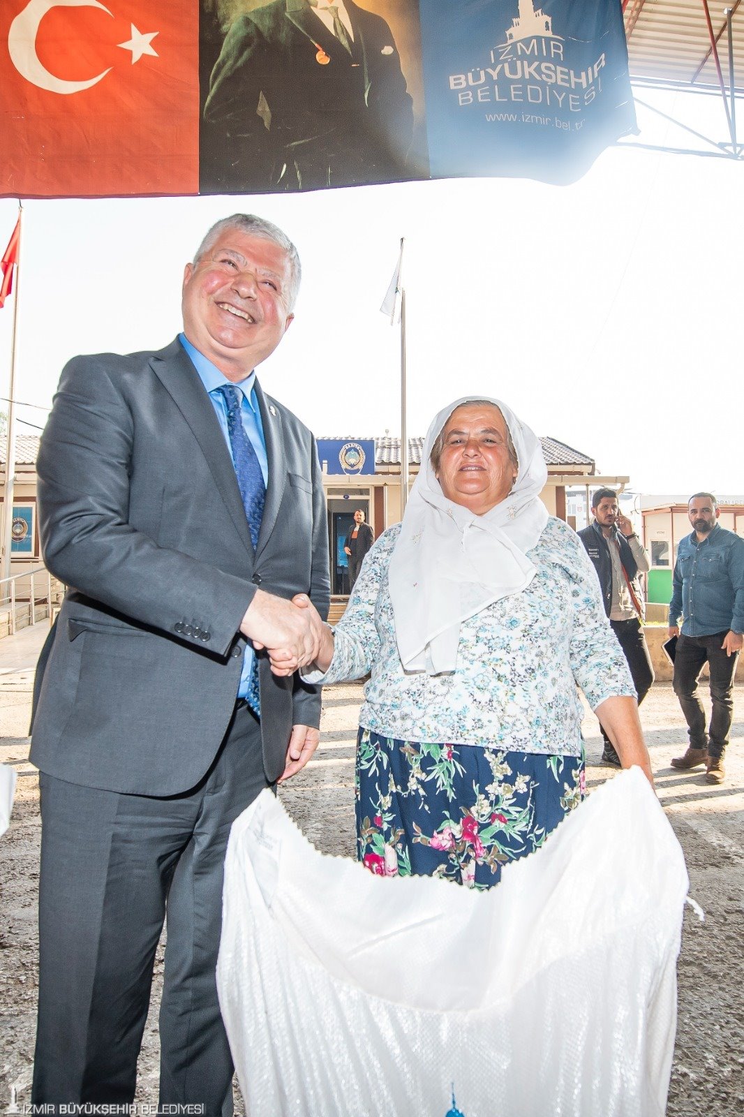 Torbalı Belediye Başkanı Mithat Tekin de İzmir Büyükşehir Belediyesi'nin üreticiye yönelik desteklerine teşekkür ederek, “Büyükşehir'in tarımsal üretime yıllardır verdiği destekleri hepimiz biliyoruz. Başkanımız Tunç Soyer'e teşekkür ediyorum” dedi. Konuşmaların ardından yem çuvalları üreticilere dağıtıldı.