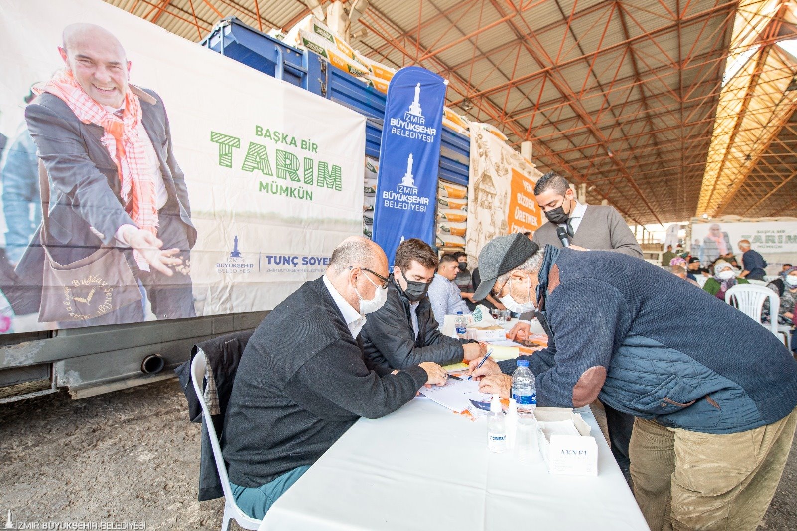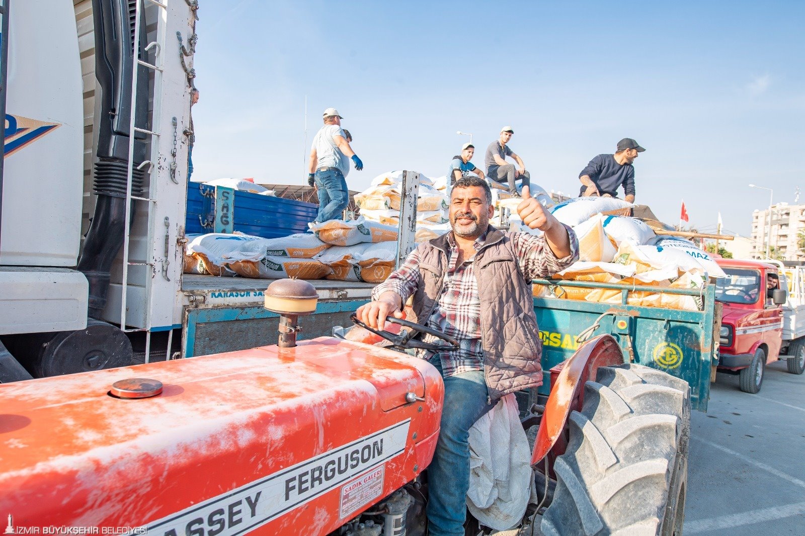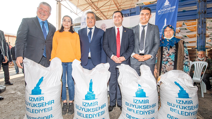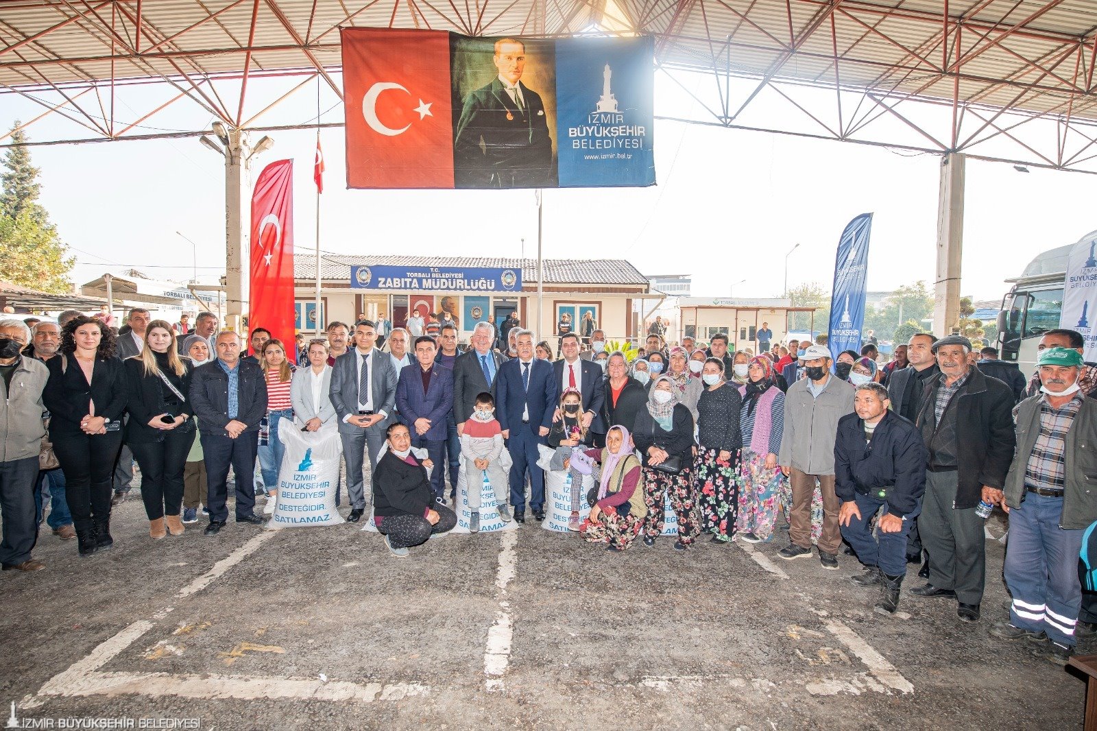 Torbalı Belediye Başkanı Mithat Tekin de İzmir Büyükşehir Belediyesi'nin üreticiye yönelik desteklerine teşekkür ederek, “Büyükşehir'in tarımsal üretime yıllardır verdiği destekleri hepimiz biliyoruz. Başkanımız Tunç Soyer'e teşekkür ediyorum” dedi. Konuşmaların ardından yem çuvalları üreticilere dağıtıldı.
