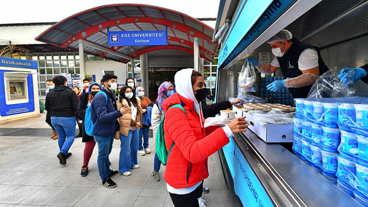 İzmir Büyükşehir Belediyesi üniversite öğrencilerine destek olmak için yürüttüğü “Çorba Durağı” hizmetini genişletti. Aşevleri Şube Müdürlüğü öğrencilerin ücretsiz sıcak yemek hizmetinden daha fazla faydalanması için hafta içi her gün 17.00 ile 19.00 saatleri arasında yemek dağıtmaya başladı. Biri Ege Üniversitesi Kampüs içerisindeki metro istasyonu, diğeri ise Dokuz Eylül Üniversitesi (DEÜ) Tınaztape Yerleşkesi karşısındaki Tarık Akan Gençlik Merkezi'nin önünde bulunan iki noktadan öğrencilere zengin bir mönü sunuluyor. Uygulama kısa süre içinde Katip Çelebi Üniversitesi Çiğli Kampüsü’nde de başlayacak.