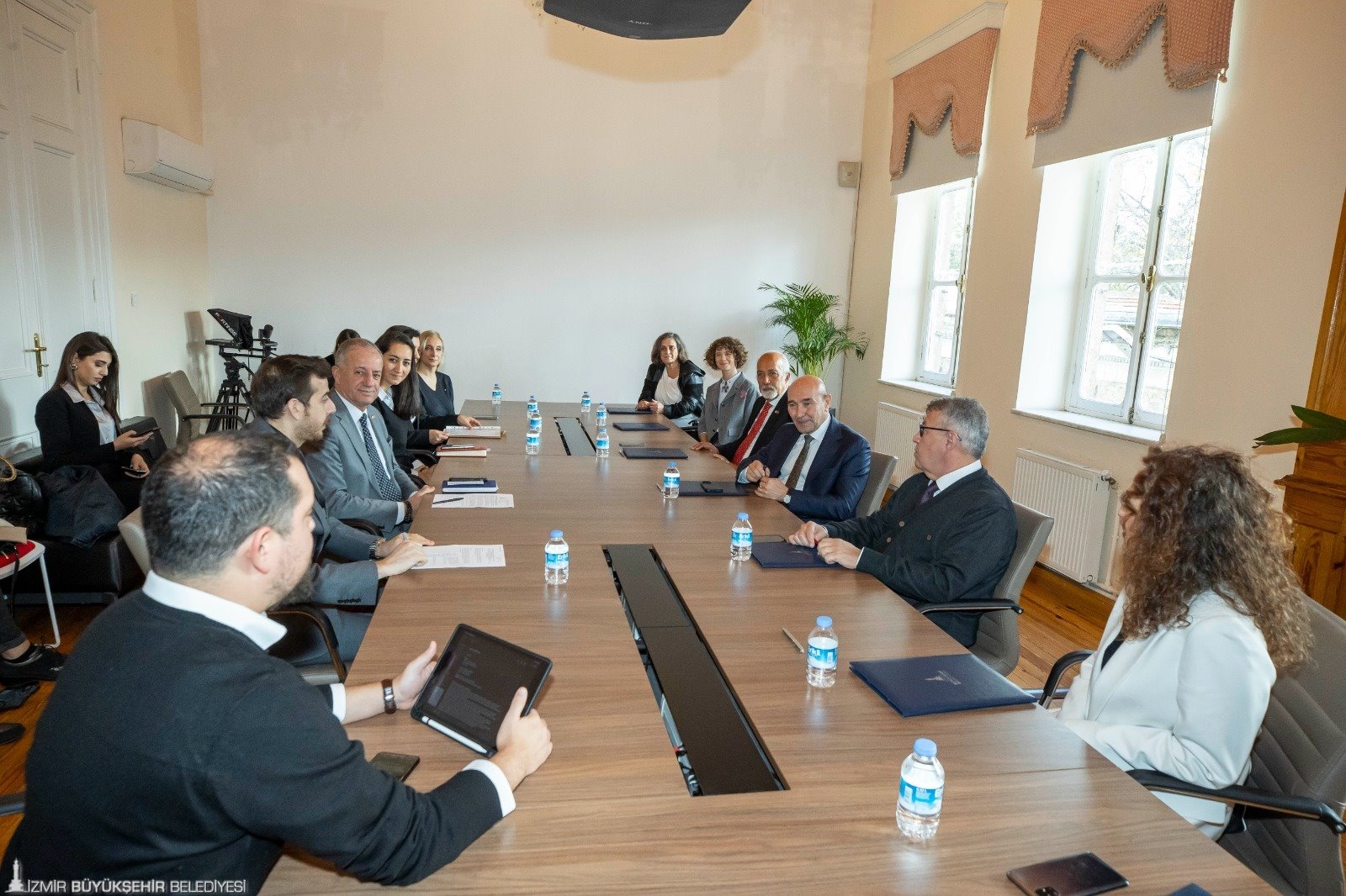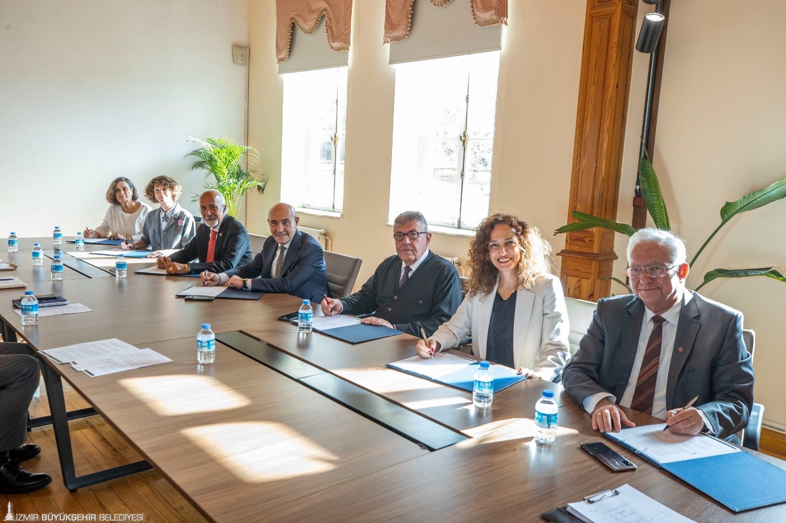 İzmir Büyükşehir Belediye Başkanı Tunç Soyer, İzmir’de öğrenim gören gençlerin bilim, kültür, sanat ve spor alanında gelişimlerine katkı sağlamak amacıyla 6 eğitim vakfı ile iş birliği protokolü imzaladı. İzmir Eğitim Vakıfları İşbirliği Modeli’nin Egemenlik Evi’ndeki imza törenine İzmir Büyükşehir Belediyesi Genel Sekreter Yardımcısı Ertuğrul Tugay, Sosyal Projeler Dairesi Başkanı Anıl Kaçar, İZEVİM (İzmir Eğitim Vakıfları İşbirliği Modeli) Genel Koordinatörü Can Güvenir, Cevdet İnci Vakfı Yönetim Kurulu Başkanı Ece Elbirlik Ürkmez, Ege Çağdaş Eğitim Vakfı (EÇEV) Yönetim Kurulu Başkanı Behice Yıldız Ünsal, Bornova Anadolu Lisesi Eğitim Vakfı (BALEV) Yönetim Kurulu Başkanı Coşkun Keskiner, Kurşun Kalem Eğitim Vakfı (KEV) Yönetim Kurulu Başkanı Çınar Aybar, Atlas Sağlık Eğitim Vakfı Yönetim Kurulu Başkanı Dr. Mustafa Apak, Urla Eğitim Vakfı (UREV) Yönetim Kurulu Başkanı Hale Pekerten katıldı.