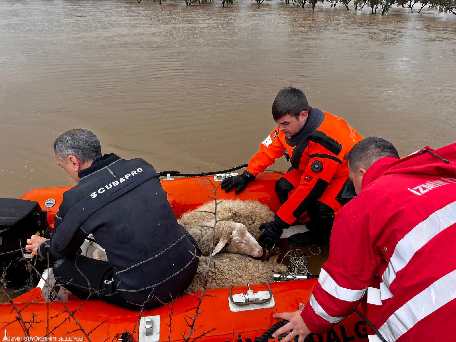 Ayrıca İZSU ve Büyükşehir Belediyesi ekipleri Torbalı Ayrancılar Mahallesi Hayıtözü Deresi’ndeki taşkına ve su baskınlarına da müdahale ediyor.