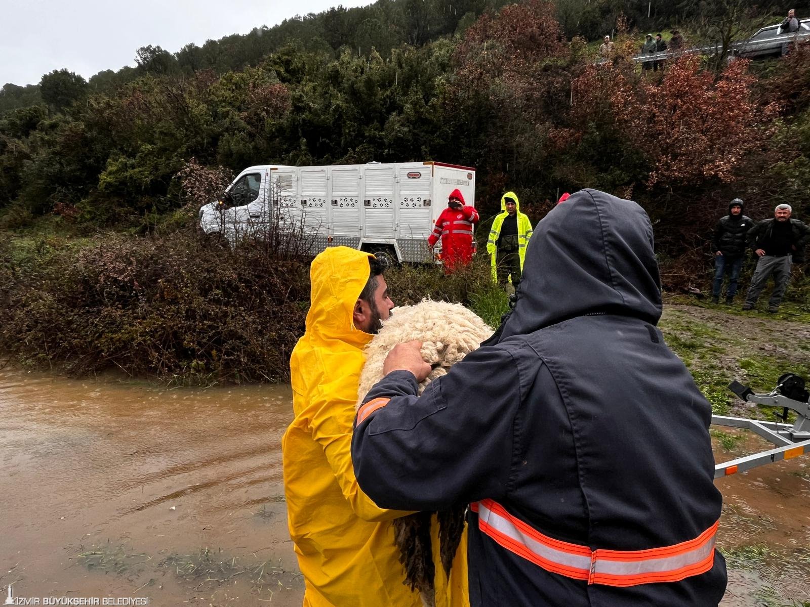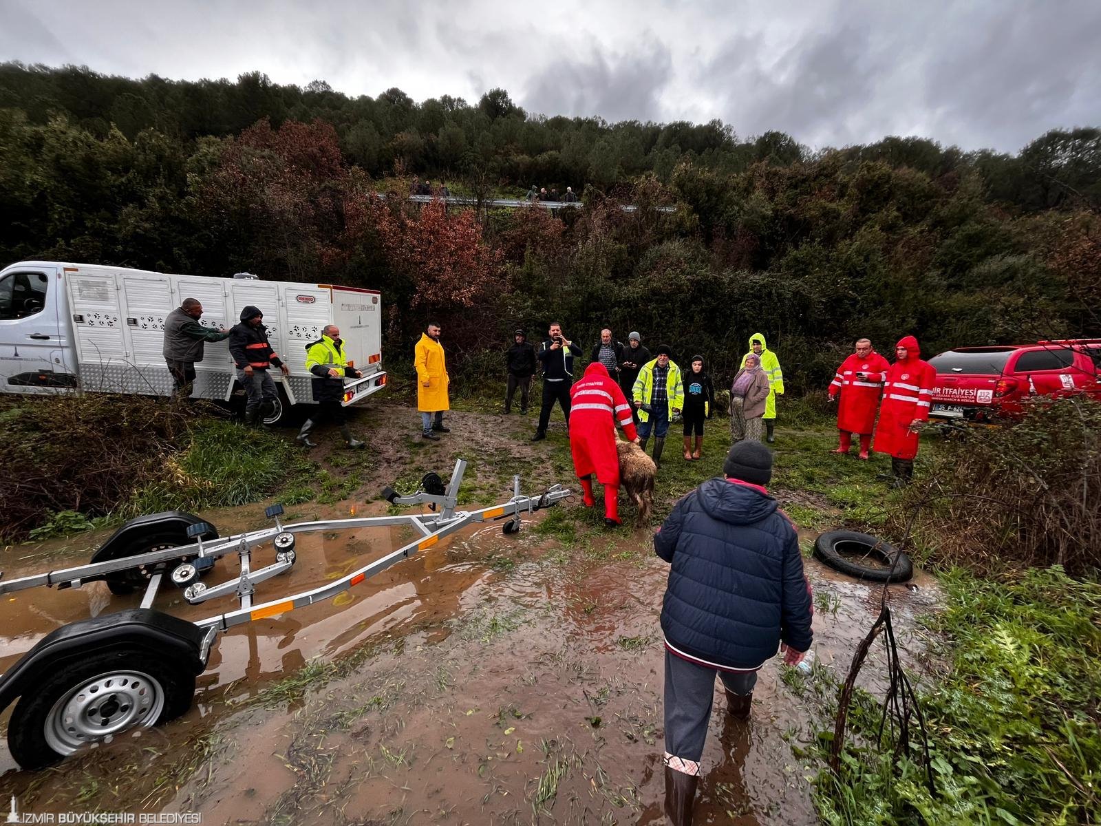 Bergama Kaşıkçı Mahallesi’nde dere taşması sonucu mahsur kalan hayvanlar için Veteriner İşleri ve İtfaiye Dairesi Başkanlığı ekipleri yönlendirildi. Koyun, tavuk ve köpekleri kurtarma çalışmaları devam ediyor. Dağıstan Mahallesi’nde seralarda oluşan hasara yönelik inceleme başlatıldı.