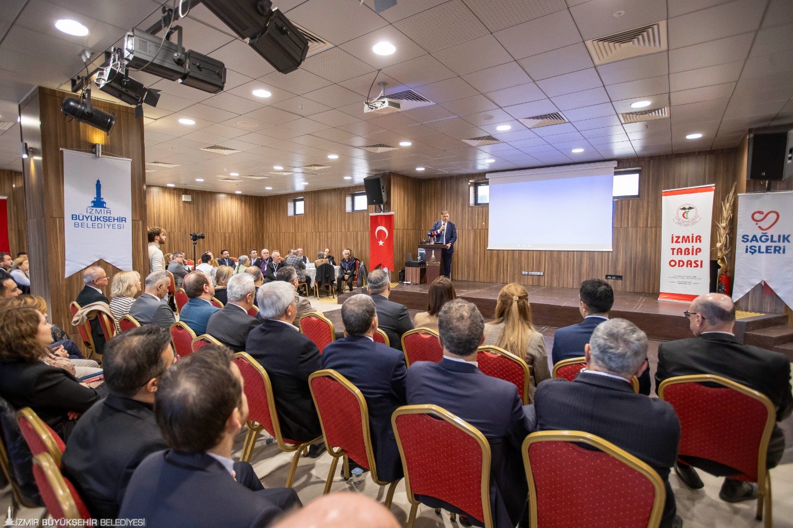 Yerel yönetimlerin sağlık hizmetlerindeki rolünü güçlendirmek ve mevcut sağlık hizmetleri sistemini iyileştirmek amacıyla İzmir Büyükşehir Belediyesi ve İzmir Tabip Odası iş birliği ile Buca Sosyal Yaşam Kampüsü Zübeyde Hanım Huzurevi’nde “Sağlık Hizmetlerinde Yerel Yönetim Vizyonu Çalıştayı” düzenlendi. Çalıştayda yerel yönetimlerin sağlık hizmetlerindeki rolüyle ilgili önemli mesajlar veren İzmir Büyükşehir Belediye Başkanı Dr. Cemil Tugay, “İyi bir kadro ile bazı çalışmaları zaten başlattık ama gerçekten yapabileceğimizin en iyisi yapıp Türkiye’ye örnek olmak istiyoruz. Yarın iktidar bizde olduğunda da aynı şeyi söylemeli ve yapmalıyız. Yerel yönetimler sağlık hizmetlerinde daha aktif olmalı, daha fazla yer almalı” dedi.