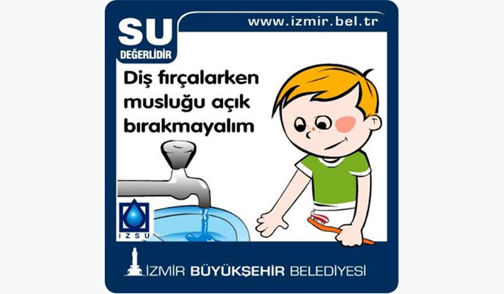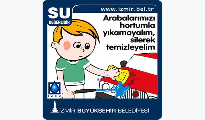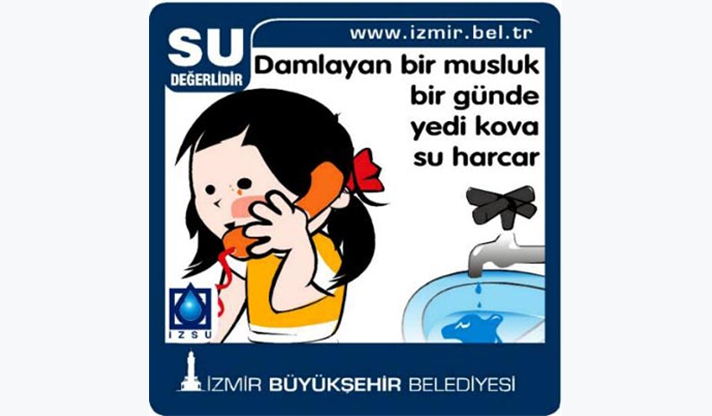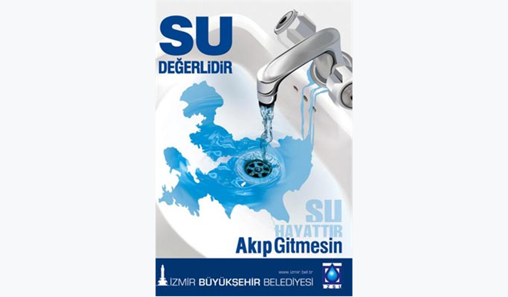 İzmir Büyükşehir Belediyesi, su kaynaklarının etkin kullanımı için “Su değerlidir, akıp gitmesin” ve “Su hayattır, boşa harcamayın” sloganlarıyla öne çıkan yeni bir kampanya başlattı. Kampanyada sınırlı su kaynaklarımızın iyi kullanılması gerektiği, tasarruf için hepimize ne gibi görevler düştüğü temaları işlenecek. Su kaçaklarının azaltılması, atık suyun tarımda kullanılması ve damla sulama sistemi gibi önlemlerle su tasarrufu konusunda önemli adımlar atan İzmir Büyükşehir Belediyesi, diğer taraftan da vatandaşı bilinçlendirmeye yönelik yeni bir kampanya başlattı. Küresel ısınma ve iklim değişikliğinin etkilerinin de göz önüne alındığı kampanyada, “Su değerlidir, akıp gitmesin” ve Su hayattır, boşa harcamayın” sloganları kullanıldı.