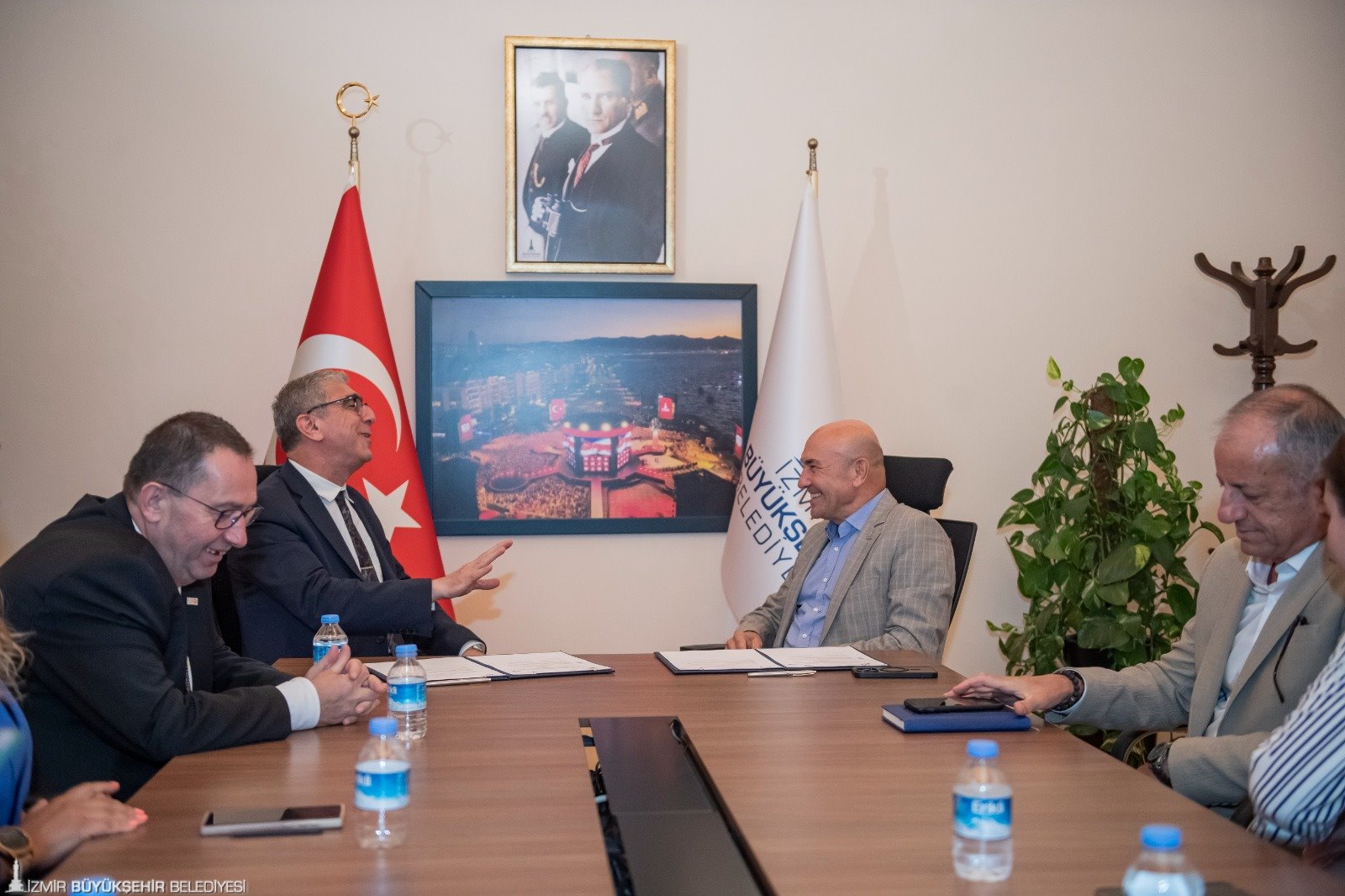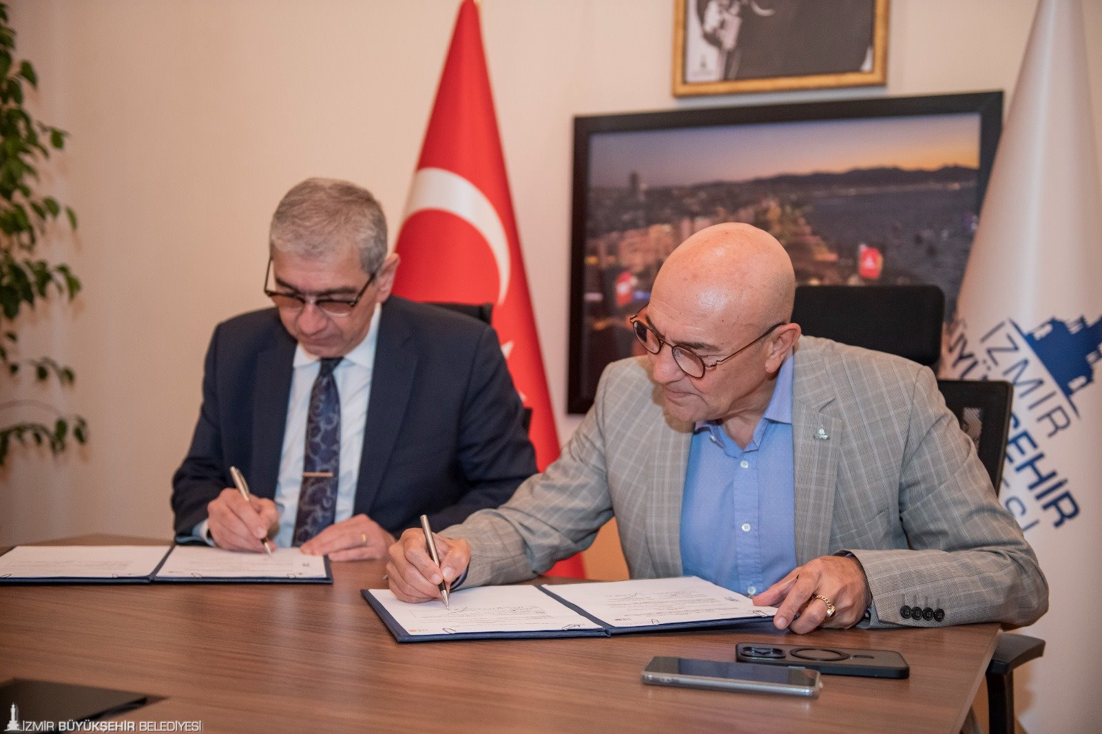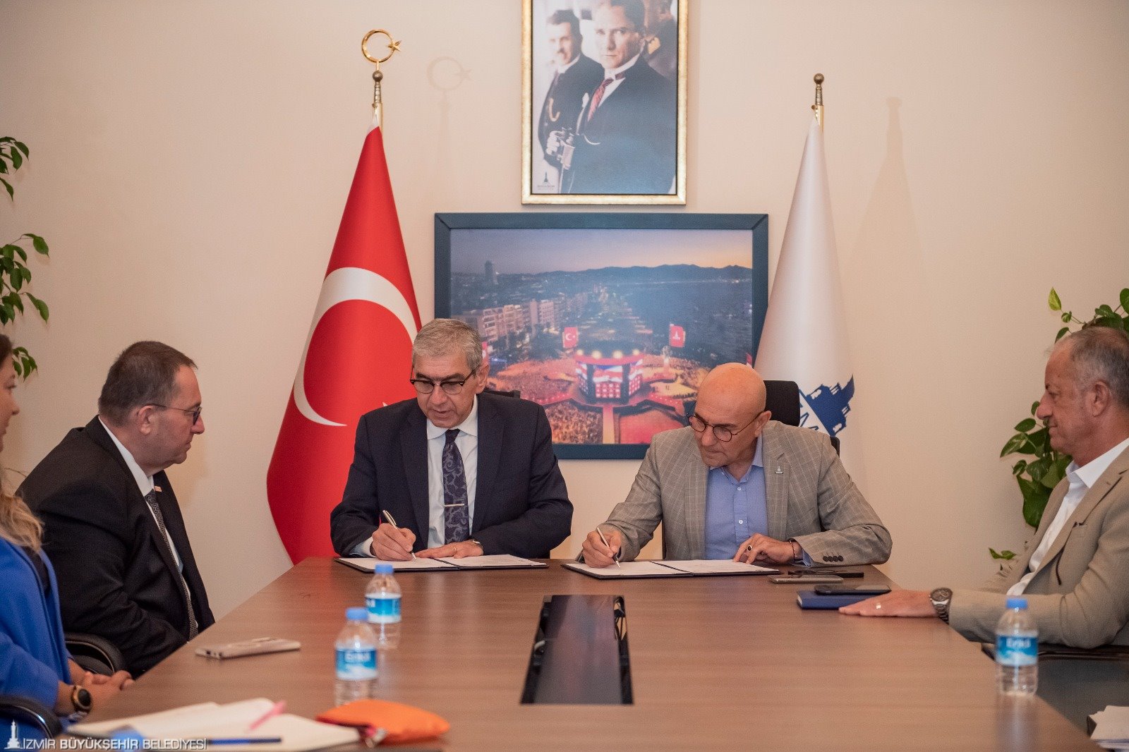 İmza töreninde konuşan Başkan Soyer, “Yapabileceğimizin en iyisini yapmak ve diğer belediyelere öncü olmak istiyoruz. Yardımcı olunacak noktalarda destek vermeye hazırız. İzmir Büyükşehir Belediyesi olarak projelerimizde Türkiye’ye örnek olmayı amaçlıyoruz” dedi.