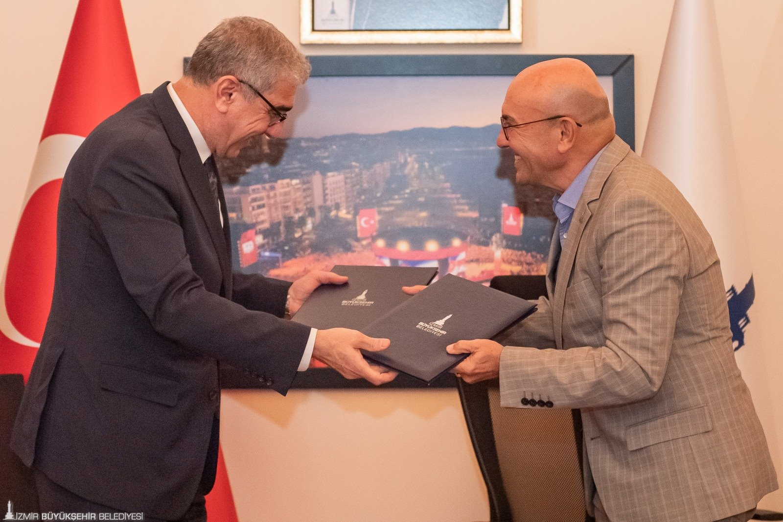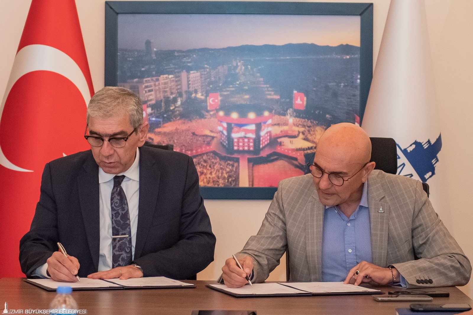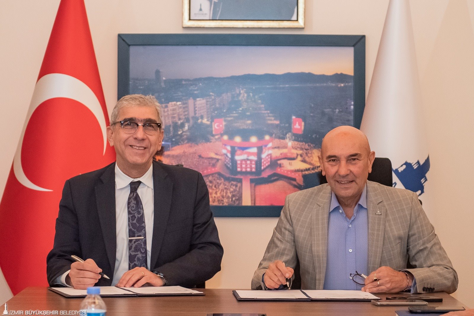 İmza töreninde konuşan Başkan Soyer, “Yapabileceğimizin en iyisini yapmak ve diğer belediyelere öncü olmak istiyoruz. Yardımcı olunacak noktalarda destek vermeye hazırız. İzmir Büyükşehir Belediyesi olarak projelerimizde Türkiye’ye örnek olmayı amaçlıyoruz” dedi.