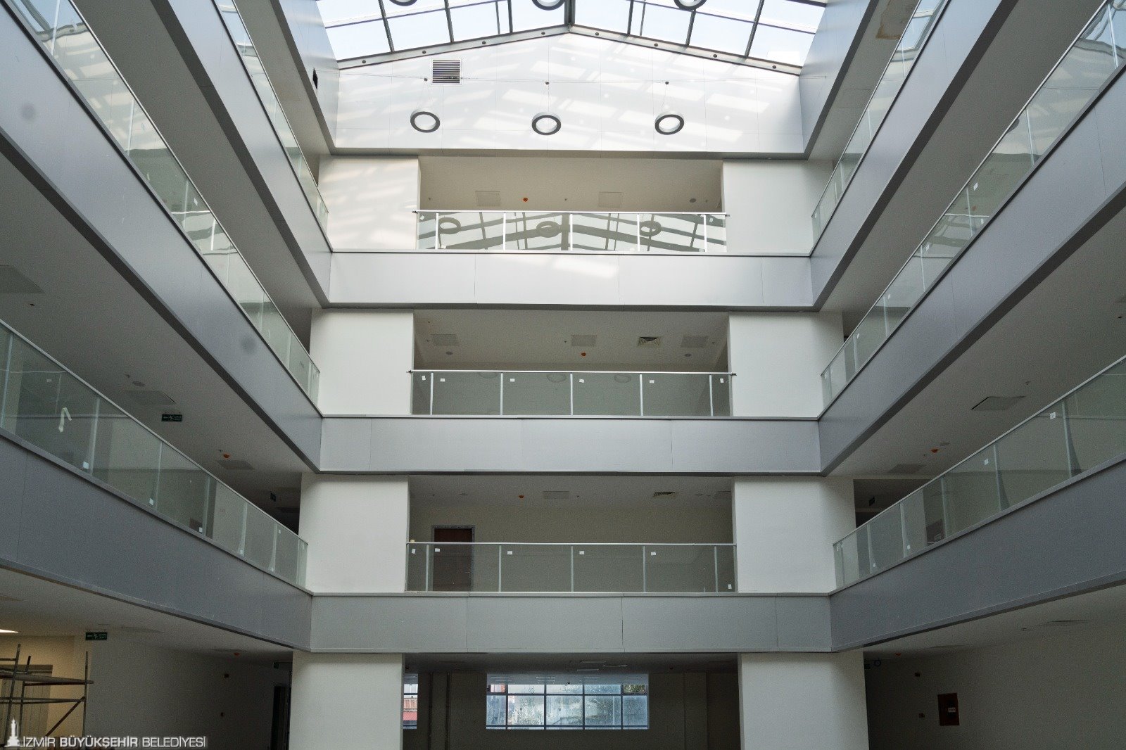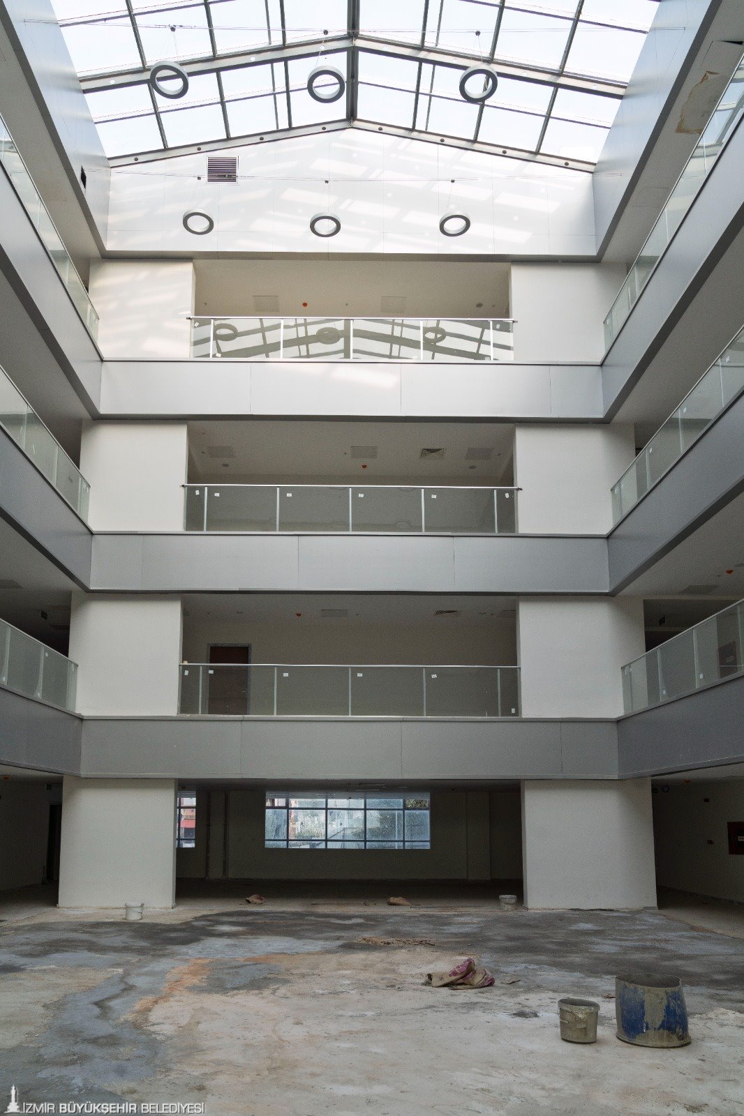 İzmir Büyükşehir Belediyesi’nin Konak’ın Güney Mahallesi’nde yapımını sürdürdüğü ek hizmet binası yakın zamanda hizmete alınacak. 17 bin metrekare alan üzerine kurulan ve farklı noktalarda hizmetlerini sürdüren bazı daire başkanlıkları ile müdürlükleri tek çatı altında toplayacak bina, yurttaşların belediye hizmetlerine ulaşımını kolaylaştıracak. 5 katlı binanın, 85 araçlık otoparkı bulunuyor.