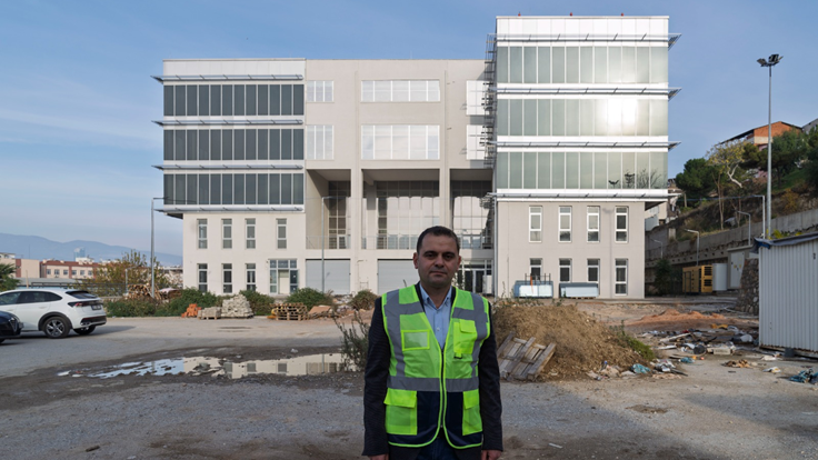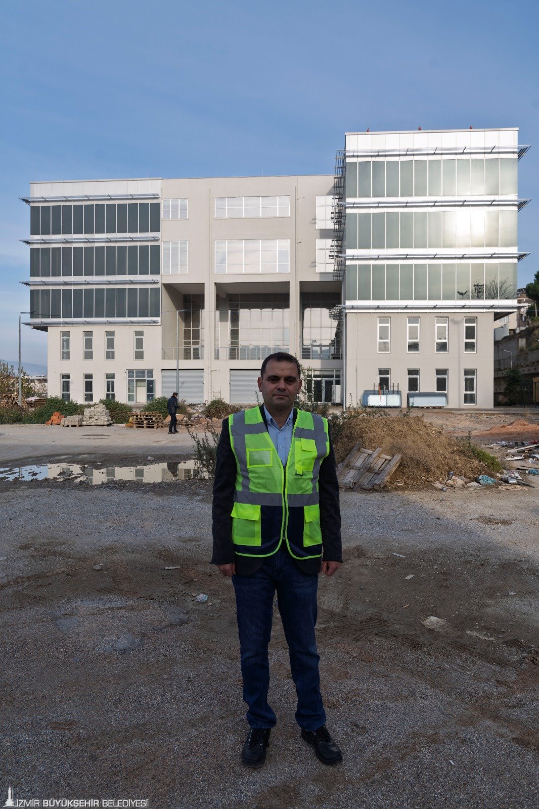 İzmir Büyükşehir Belediyesi Yapı İşleri Dairesi Başkanlığı bünyesinde kontrol mühendisi olarak görev yapan Erdem Gürbüz, çalışmalar hakkında bilgi verdi. Gürbüz, Konak’ta bulunan ana hizmet binasının 2020 depreminin ardından ağır hasar aldığı için yıkıldığını anımsattı. Birimlerin yurttaşlara kesintisiz hizmet sağlamak adına özverili şekilde çalıştığını vurgulayan Erdem Gürbüz, “Belediye hizmetlerinin aksamaması için çalışmalarımız sürüyor. Ek hizmet binaları ile İzmirliye konforlu ve ulaşılabilir hizmeti götürmeyi sürdüreceğiz. Bu bina tamamlandığında birçok birim tek çatı altında toplanacak. Burada; Mezarlıklar Dairesi Başkanlığı, Çevre Koruma ve Kontrol Dairesi Başkanlığı, İklim Değişikliği ve Sıfır Atık Dairesi Başkanlıkları gibi birimlerimiz hizmet sunacak” dedi.
