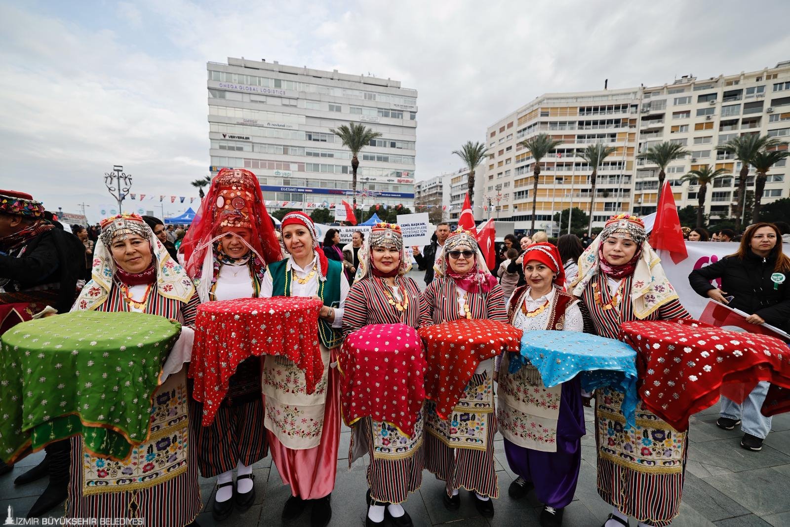 İzmir Büyükşehir Belediyesi, Türkiye’nin zorlu ekonomik koşullarında yaşam mücadelesi veren çiftçileri, 21 Aralık Dünya Kooperatifçilik Günü’nde İzmir’de buluşturdu. Birleşmiş Milletler Genel Kurulu tarafından 2025 yılının “Uluslararası Kooperatifler Yılı” ilan edilmesi nedeniyle “Kooperatifler Daha İyi Bir Dünya Kurar” temasıyla düzenlenen etkinlikler kapsamında, İzmir’in dört bir yanından kooperatif üyeleri Cumhuriyet Meydanı’nda toplandı. İzmir Büyükşehir Belediye Başkanı Dr. Cemil Tugay’ın ev sahipliğindeki etkinliğe Tire Belediye Başkanı Hayati Okuroğlu, Beydağ Belediye Başkanı Şakir Başaran, Gaziemir Belediye Başkanı Ünal Işık, Ödemiş Bademli Fidancılık Tarımsal Kalkınma Kooperatifi Başkanı Hurşit Nallı, Simurg Kadın Kooperatifi Başkanı Sibel Uyar başta olmak üzere kentin her bölgesinden kooperatif başkanları, siyasi parti temsilcileri, üreticiler, muhtarlar ve vatandaşlar katıldı. Halk oyunları gösterilerinin de yapıldığı meydanda tüm vatandaşlar Harmandalı oynadı. Kutlamaların ardından kortej İzmir Büyükşehir Belediyesi Bandosu ve traktörler eşliğinde Vasıf Çınar Bulvarı’nı geçerek Lozan Kapısı’ndan Kültürpark’a ulaştı. Traktörlerin kornalarına çevreden vatandaşlar da destek verdi. Başkan Tugay ve katılımcılar Kültürpark’ta bugüne özel kurulan üretici pazarını gezdi.