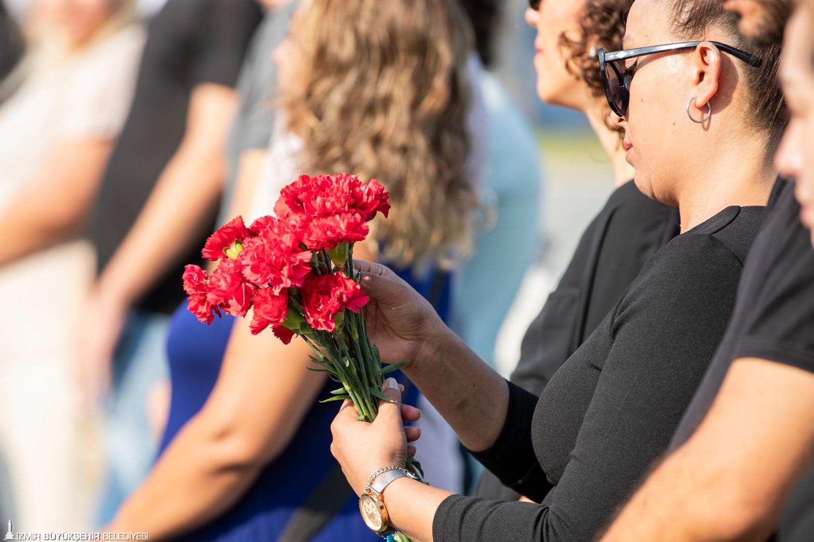 Anma törenindeki konuşmaların ardından İkinci Dünya Savaşı’nda katledilen Romanlar anısına İzmir Körfezi’ne kırmızı karanfil bırakıldı.