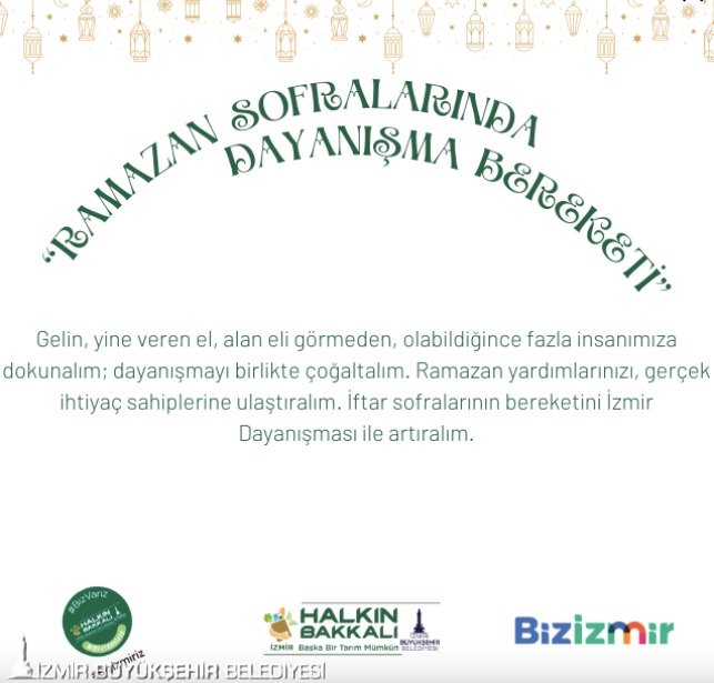 İzmir Büyükşehir Belediyesi Ramazan ayında kentin merkez ilçeleriyle beraber Bergama’dan Menderes’e Torbalı’dan Foça’ya kadar civar ilçeler de dâhil olmak üzere parklara kuracağı iftar noktalarında, kentin 10 farklı noktasında bulunan Bizİzmir Dayanışma Noktaları’nda ve mobil ikram araçlarıyla iftar yemeği dağıtacak.