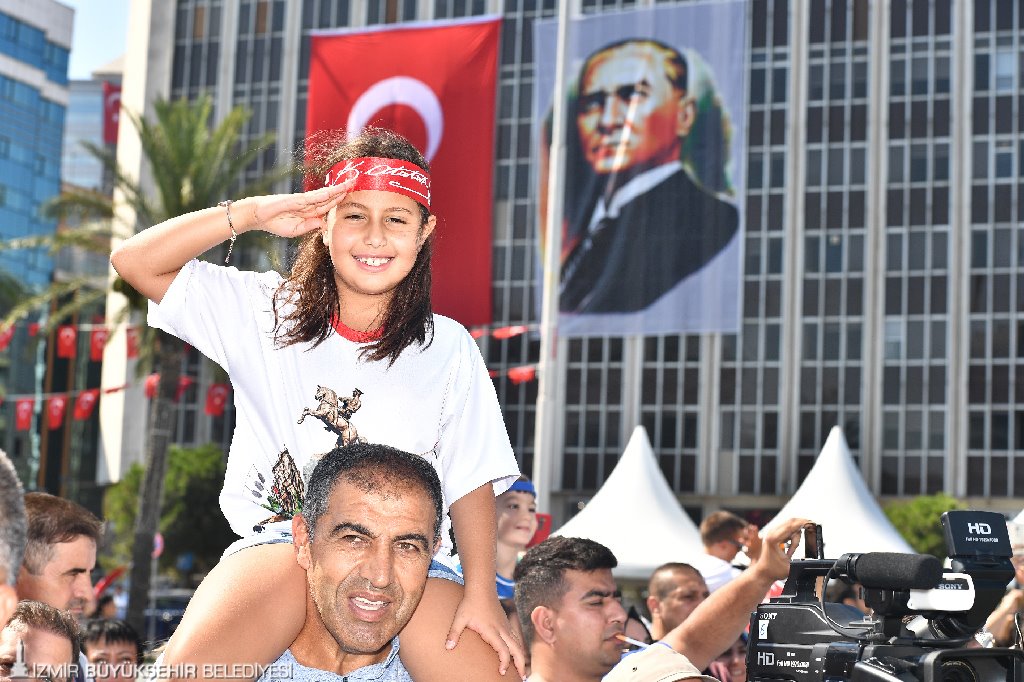 23 Nisan 2026 Perşembe23 Nisan Ulusal Egemenlik ve Çocuk Bayramı nedeniyle İzmir’de Cumhuriyet Meydanı’nda tören düzenlendi. Törende Kahramanmaraş’ta meydana gelen okul saldırılarında hayatını kaybeden öğretmen ve öğrenciler anısına saygı duruşunda bulunuldu.