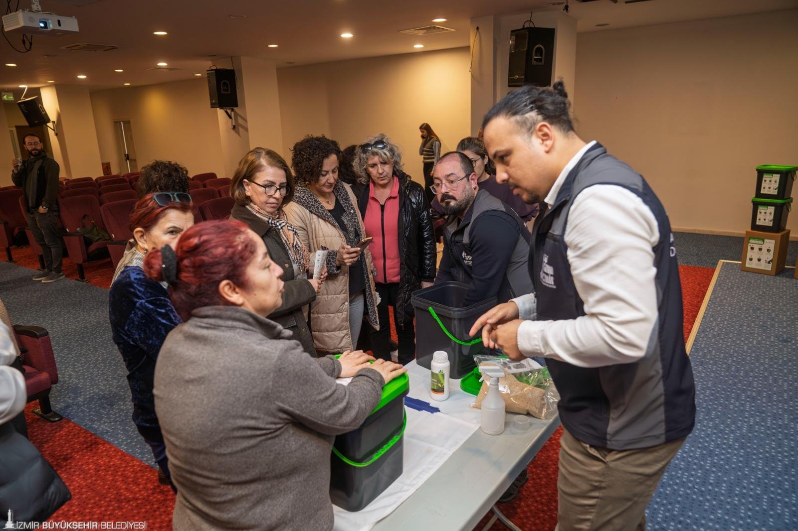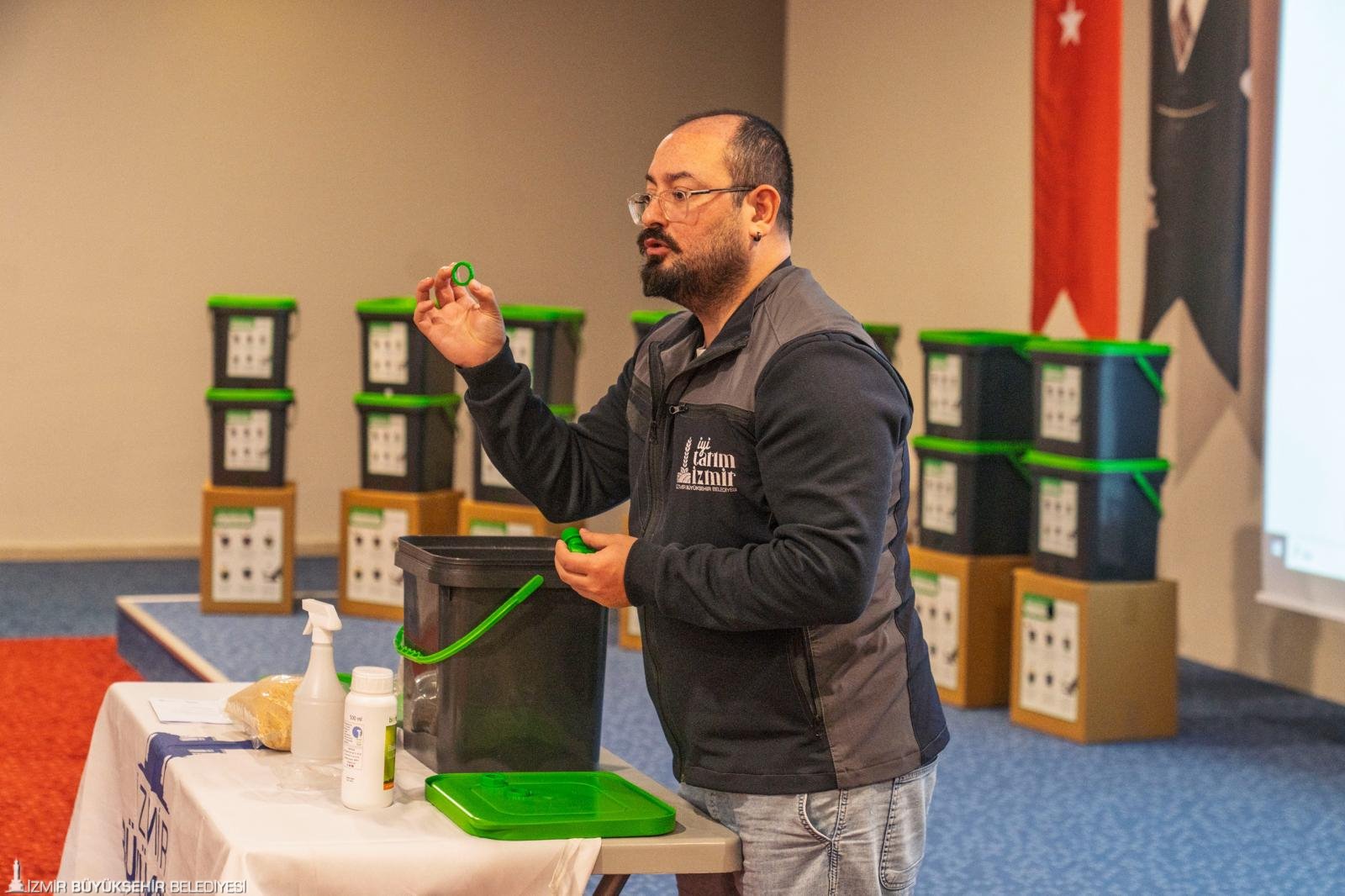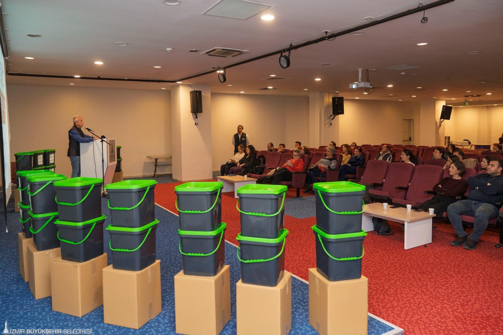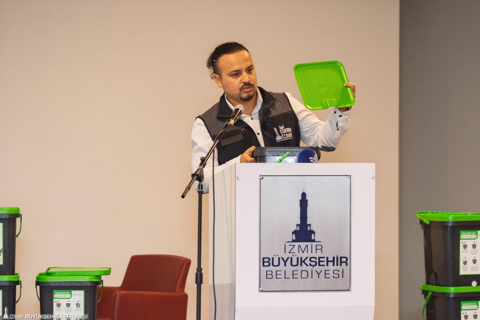 Kompost Üretimi ve Geri Kazanım Şube Müdürlüğü’nde görevli ziraat yüksek mühendisi Ferdan Çiftçi ise “Bu çalışma, Cemil Başkanımızın üzerinde durduğu bir proje. Küresel iklim değişikliği ve su krizinin yaşandığı günümüzde toprak verimliliğinin artırılması ve su kapasitesinin yükseltilmesi için hemşehrilerimizle beraber ortak bir yola çıkıyoruz. Bu yolculukta beraber bu işi büyütecek ve hepimiz kazanacağız. Bu, dünya için yapacağımız çok büyük bir iyilik. İzmir kazanacak, dünya kazanacak. Şu an 10 bin kova ile yola çıkıyoruz. Proje büyüyerek devam edecek” diye konuştu.