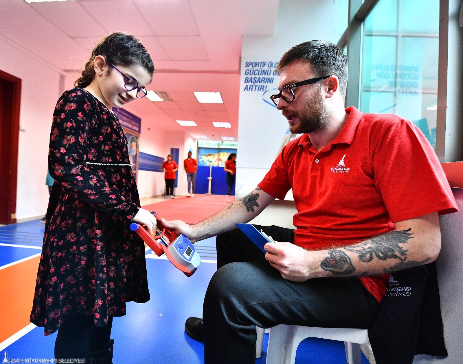 Minikleri 15 istasyonda ölçüme aldıklarını aktaran İzmir Büyükşehir Belediyesi Gençlik ve Spor Hizmetleri Dairesi Başkanlığı eğitmeni Kader Ener, “Bizim buradaki amacımız 8-9-10 yaşlarındaki çocuklarımızı alıp hangi branşlarda başarılı olduğunu bulup yönlendirme yapabilmek. Ege Üniversitesi ile bir protokol yapıldı. Hocalarımız ile sistemi oturttuk. Biz burada ölçümleri alıyoruz. Biz de sonuçlara göre ailelere çocuklarınızı hangi branşa yönlendirirseniz daha faydalı olur diyerek yardımcı oluyoruz. Öncelikle çocukları spora yönlendirmek istiyoruz. Daha sonra daha iyi yerlere gelmeleri için destekte bulunuyoruz” ifadelerini kullandı.
