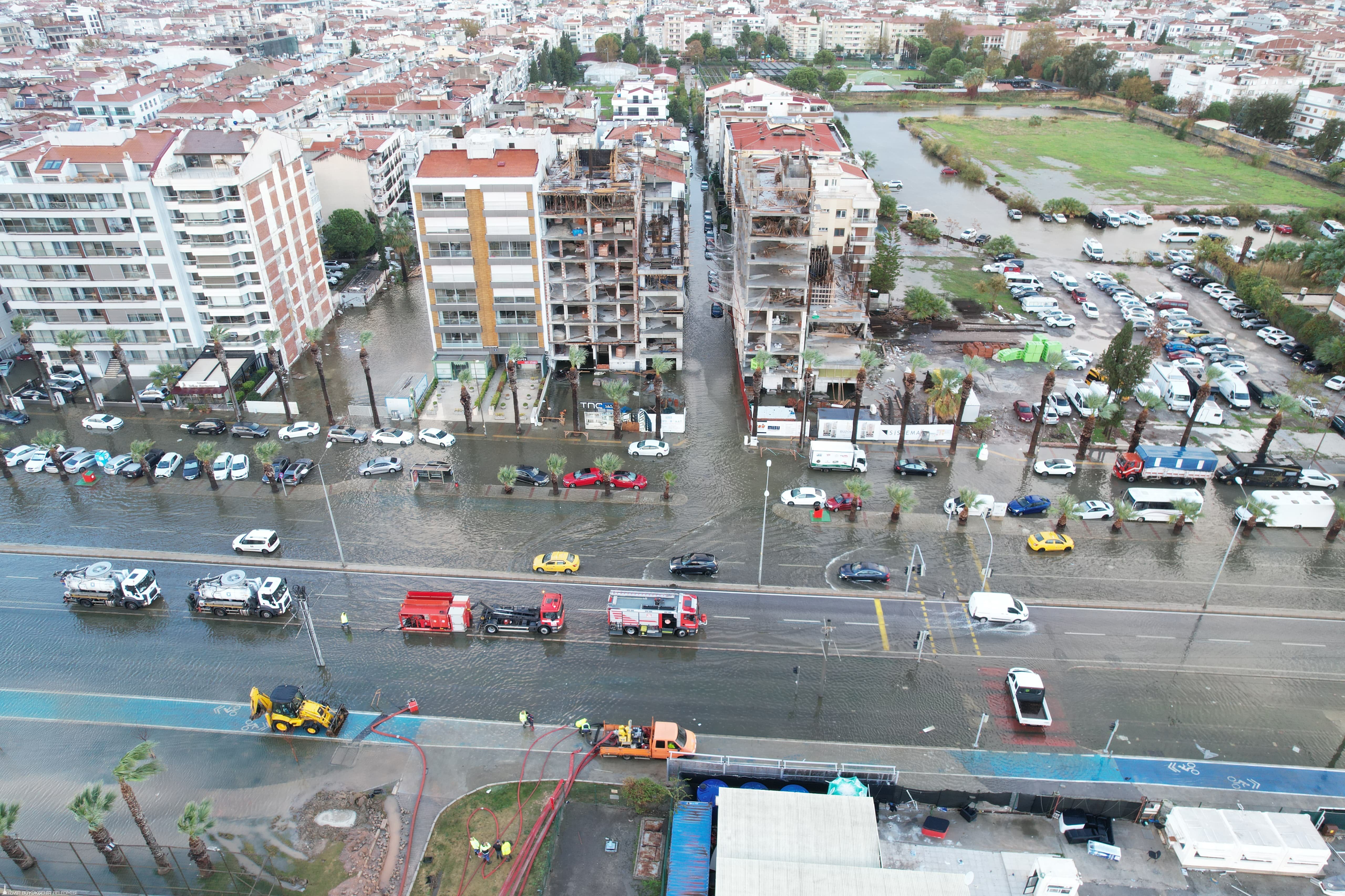 İzmir’de meteorolojik koşulların yarattığı etkiye bağlı olarak deniz taşkını yaşandı. İzmir Büyükşehir Belediyesi İZSU Genel Müdürlüğü ve İtfaiye Dairesi Başkanlığı ekipleri, deniz seviyesinin 1 metre yükseldiği taşkına karşı, tüm personel ve ekipmanıyla halkın can ve mal güvenliğini sağlamak için özverili bir mücadele yürütüyor.