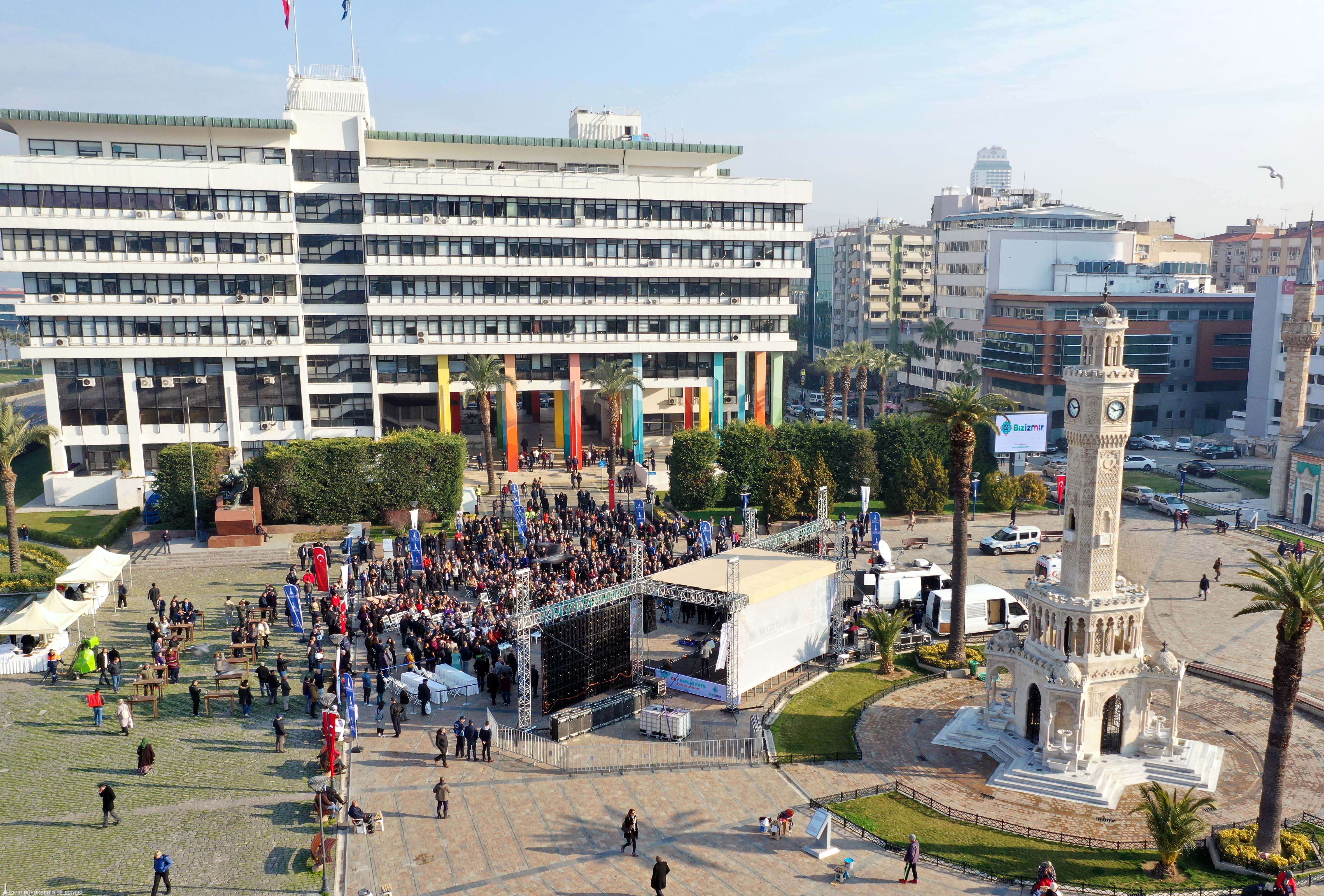 İzmir Büyükşehir Belediyesi bugün İzmir’in en büyük meydanının açılışını yaptı. Bizİzmir adı verilen dijital platform, İzmir’de yaşayanların kentteki tüm etkinlikleri takip edebilmelerini, belediyeden haber almalarını, önemli konularda görüş ve önerilerini kolaylıkla paylaşabilmelerini sağlıyor. Platforma bizizmir.com adresinden erişilebiliyor ve dijital platformun uygulamasını indirilebiliyor.