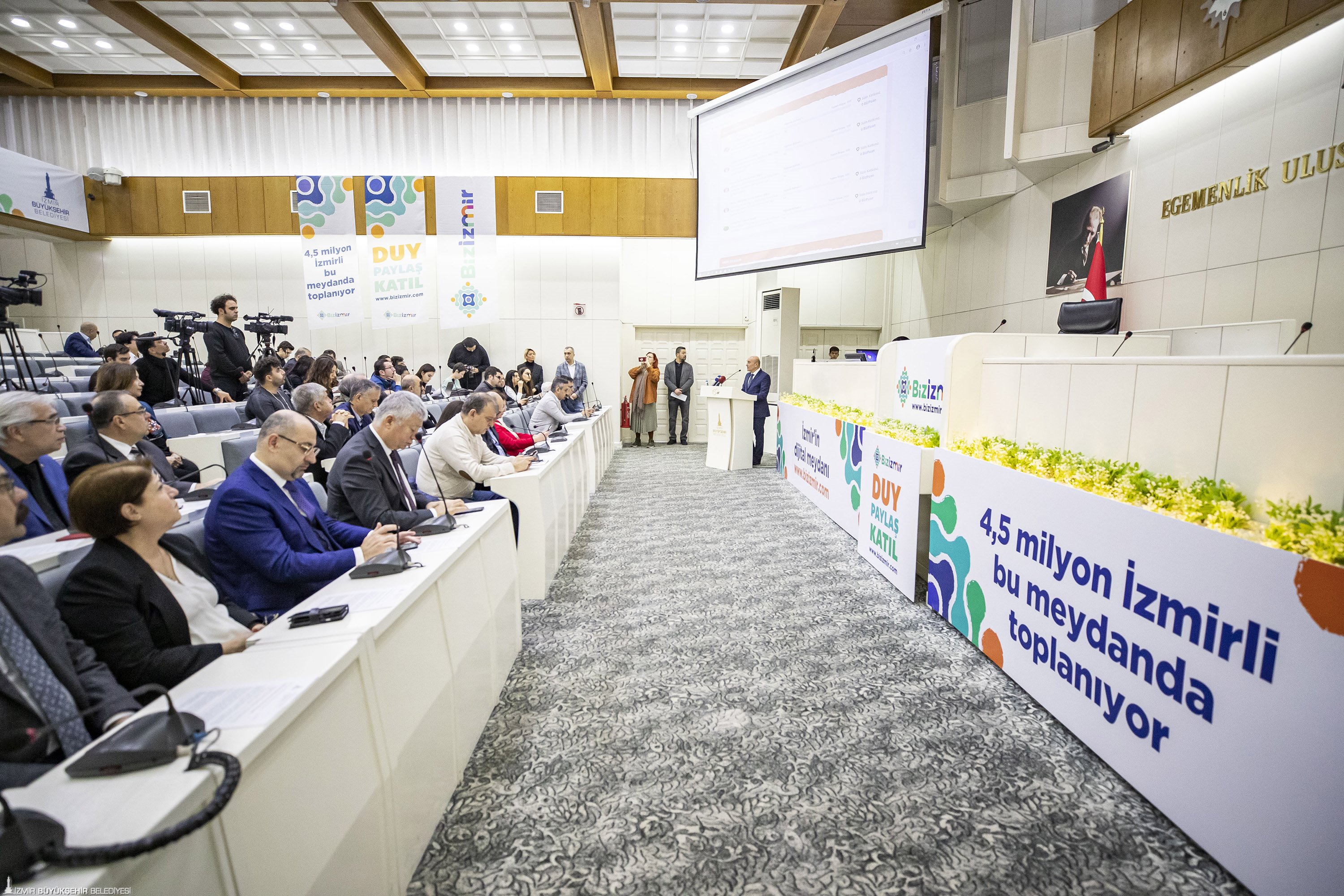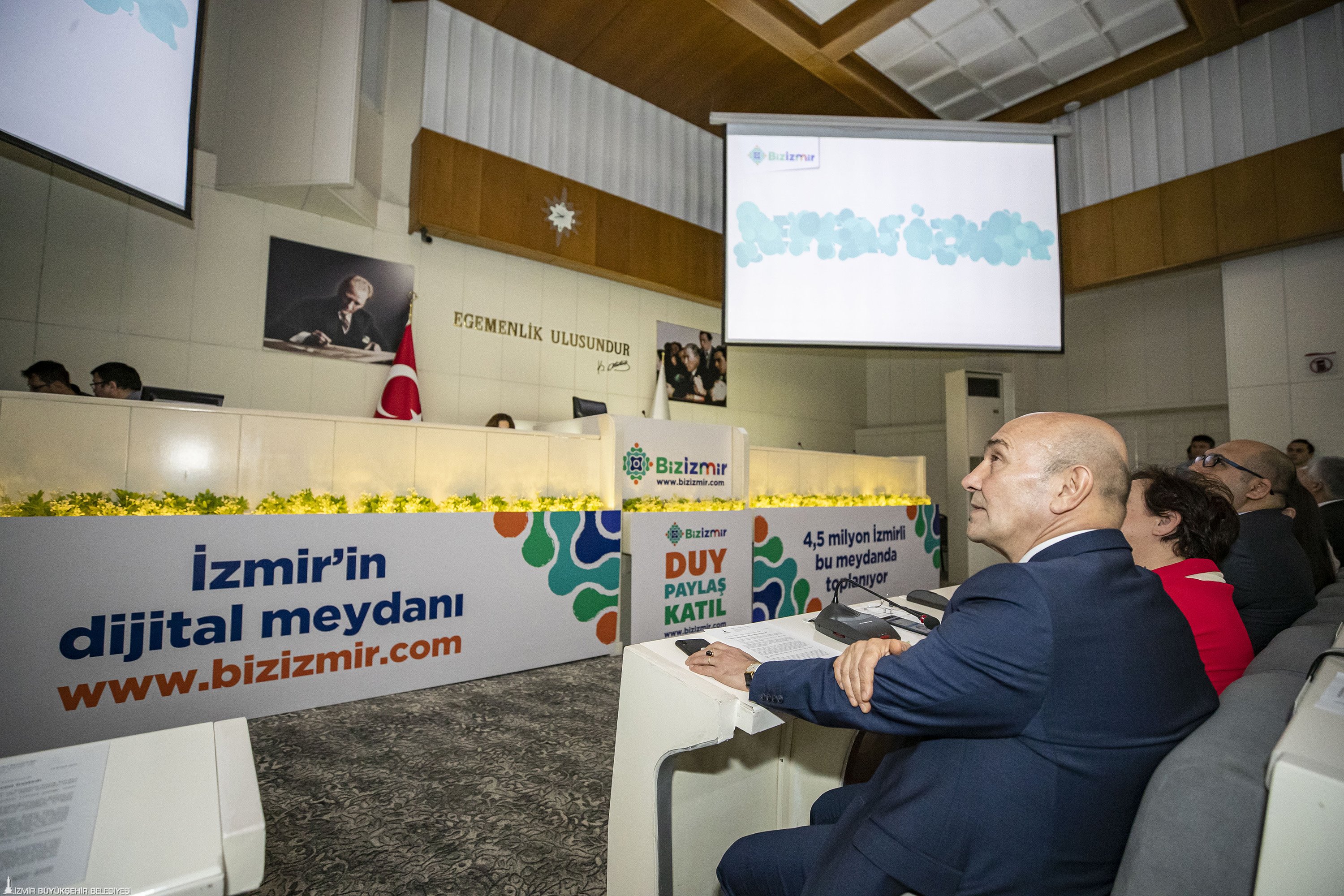 Bizİzmir platformunun açılışını yapan İzmir Büyükşehir Belediye Başkanı Tunç Soyer, platformu basına bizzat tanıttı ve sitenin temel işlevlerini anlattı. İzmir’in belediyecilik anlayışıyla Bizİzmir arasındaki ilişkiyi ve şeffaf belediyecilik anlayışını özellikle vurgulayan Tunç Soyer, “En önemli hedefimiz olan şeffaf, katılımcı, demokratik yerel yönetim anlayışımızı dijital platformda da hayata geçirmek ve kenti hep birlikte yönetmek için artık yeni bir zeminimiz var. Bizİzmir ile kentimizde dijital demokrasi dönemi başlıyor. Bu nedenle iletişim çalışmalarımızda Bizİzmir’i ‘kentin dijital meydanı’ olarak tanımladık. Hedefimiz 4,5 milyon İzmirlinin yolunun geçtiği, sesini duyurduğu bir meydan yaratmak” dedi.
