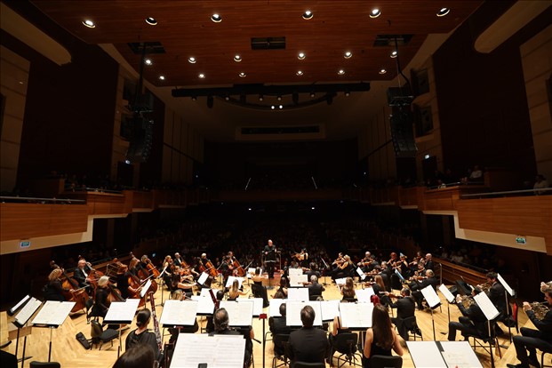 17 Ocak 2026 Cumartesiİzmir Büyükşehir Belediyesi Ahmed Adnan Saygun Sanat Merkezi'nde (AASSM) iki büyük isim aynı sahnede İzmirlilerle buluştu. İzmir Devlet Senfoni Orkestrası’nı (İZDSO) yöneten şef Christoph-Mathias Mueller ve keman virtüözü Bomsori Kim izleyenlerden tam not aldı.