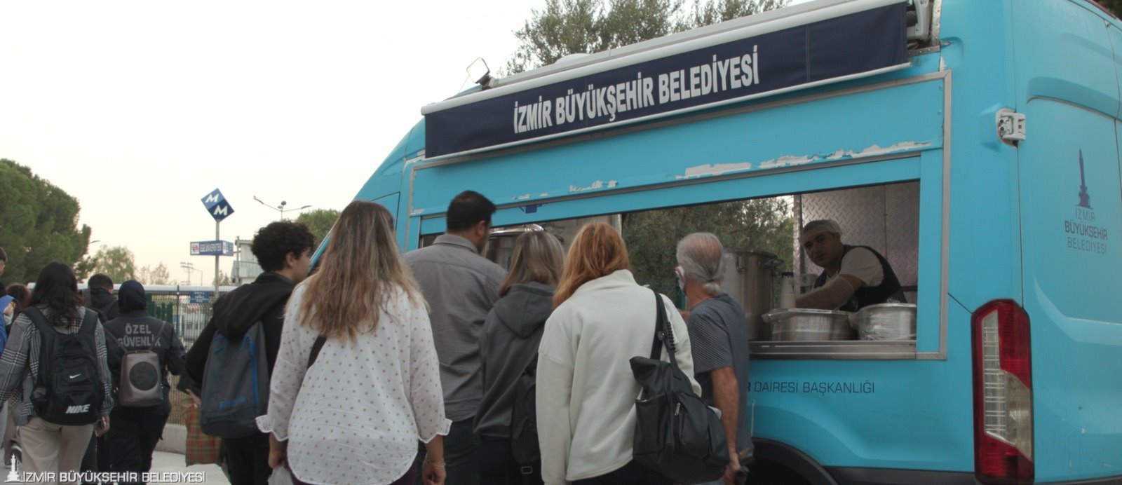 İzmir Büyükşehir Belediyesi, üniversitelileri sabahları da akşamları da yalnız bırakmıyor. Öğrencilerin ağır ekonomik şartlarda mağdur olmaması için çorba duraklarının yanı sıra, kentin 6 noktasında akşam 17.00-19.00 saatleri arasında sıcak yemek dağıtımı yapılıyor. Ailelerinden uzakta üniversite öğrenimi gören gençler için İzmir adeta sıcak bir yuvaya dönüştürülmeye çalışılıyor.