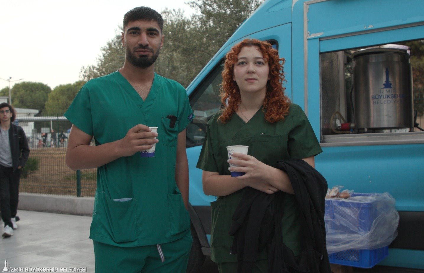 Sevinç Demirölmez ise “Buradaki ilk senem. Çorbanın tadı çok güzel, üstelik ücretsiz. İzmir’de öğrenci olduğum için mutluyum. Güzel bir şehir. Okul güzel, hizmetler güzel” diye konuştu.