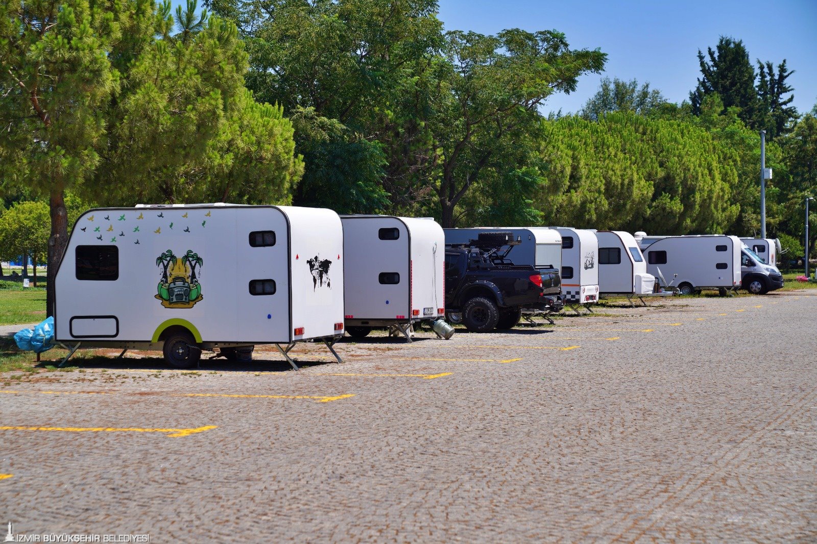 İzmir Büyükşehir Belediyesi, karavanların oluşturduğu park sorununu çözmek, karavan sahiplerinin güvenli parklanmasını sağlamak için çalışmalarını sürdürüyor. İZELMAN AŞ Otoparklar Müdürlüğü tarafından nisan ayında Aşık Veysel Rekreasyon Alanı’nda işletmeye açılan otoparkta, binek araçlar için 163, karavanlar için de 89 park yeri hazırlandı. Otopark, hem abonelik sistemine hem de günlük ve saatlik girişlere göre 24 saat esasıyla güvenlik görevlileri kontrolünde işletiliyor. Otopark alanında araçların giriş ve çıkışları ise güvenlik kameraları tarafından kayıt altına alınıyor. İzmir Büyükşehir Belediyesi, karavanların park edebilmesi için bir alana daha karavan otoparkı açmaya hazırlanıyor. İnciraltı Terminali’nde yapım çalışmaları devam eden otoparkta, çekme tekneler için 64, karavanlar için de 93 park yeri oluşturuluyor. İZELMAN AŞ Otoparklar Müdürlüğü tarafından işletilecek otopark, sadece abonelik sistemine göre hizmet verecek ve araçların giriş ve çıkışları güvenlik kameraları tarafından kayıt altına alınacak. İnciraltı’nda faaliyete girecek otopark da 24 saat açık olacak ve güvenlik görevlileri tarafından kontrol edilecek.