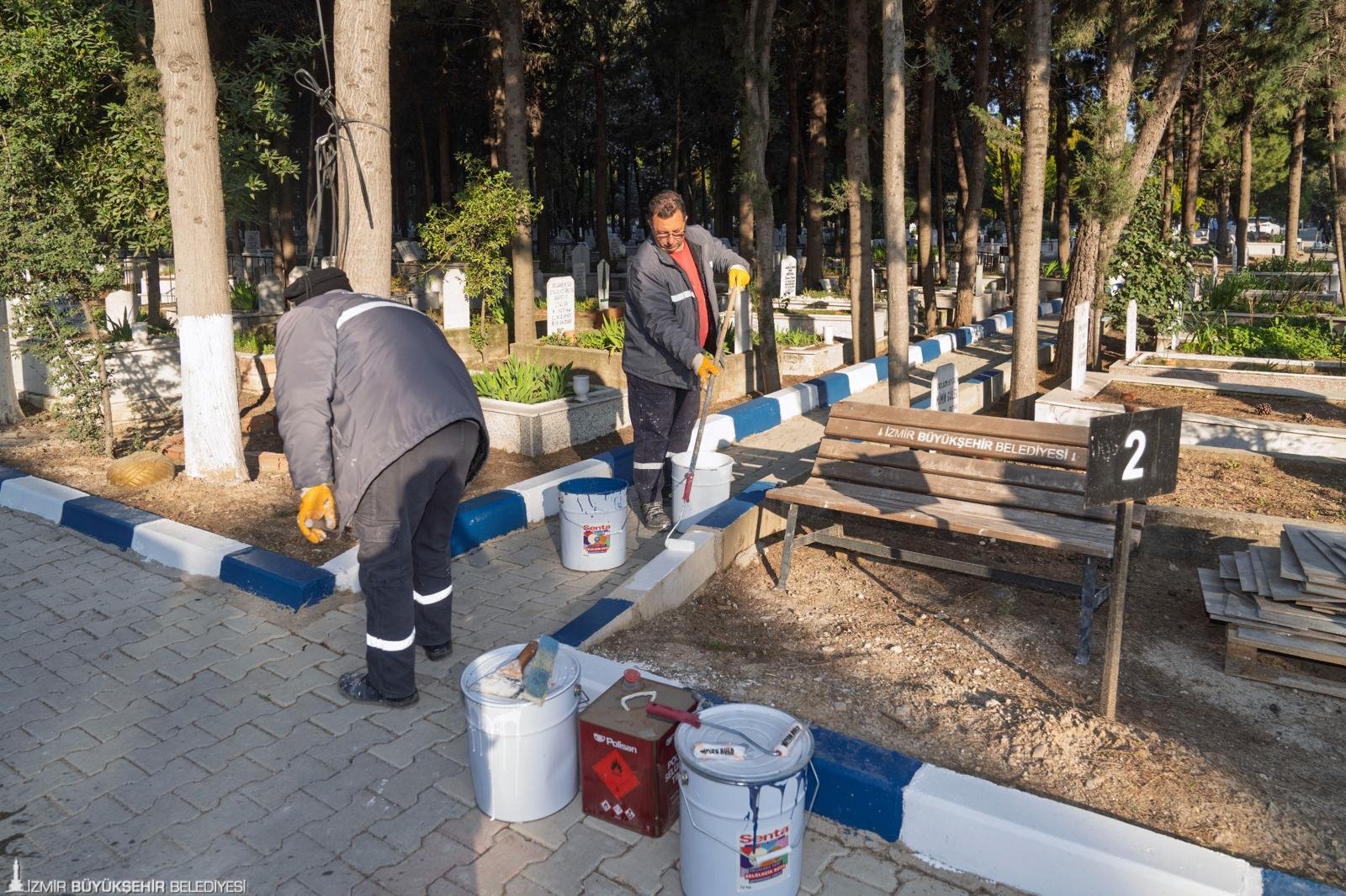 İzmir Büyükşehir Belediye Mezarlıklar Dairesi Başkanlığı, Ramazan Bayramı’na sayılı günler kala toplu mezarlık temizliğini Gaziemir’den başlattı. İlçe belediyesi ekiplerinin de destek verdiği çalışmalar kapsamında bakım, temizlik, ilaçlama çalışması yapıldı. Zararlı böceklere karşı ağaçlar kireçlendi.
