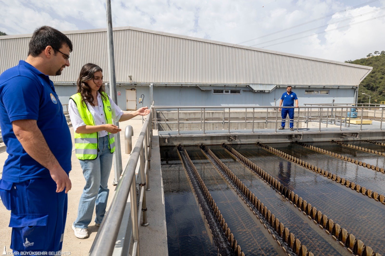 İZSU Su Arıtma Dairesi Başkanlığı Kuzey Su Arıtma Şube Müdürü Serhat Koçaker, Kavaklıdere İçme Suyu Arıtma Tesisi’nde oldukça uzak mesafeden gelen suyu arıtmak için titizlikle çalıştıklarını söyledi. Koçaker, “100 kilometre mesafeden su geliyor. Ham suyu, online cihazlarla ve laboratuvarımızda kontrol ediyoruz. Havalandırma ünitesine alınan su buradan durultucu ünitelerine geçiyor. Kimyasal ilavesi ile sudaki askıda katı maddelerin çökmesi sağlanıyor. Daha sonra su filtre kısmına geçiyor. Hızlı kum filtrelerinde bu süreç de tamamlandıktan sonra su filtrelenmiş su tankına ardından son klorlama ünitelerine geliyor. Temiz su deposuna alınan su şebekeye dağıtıma hazır hale geliyor” dedi.