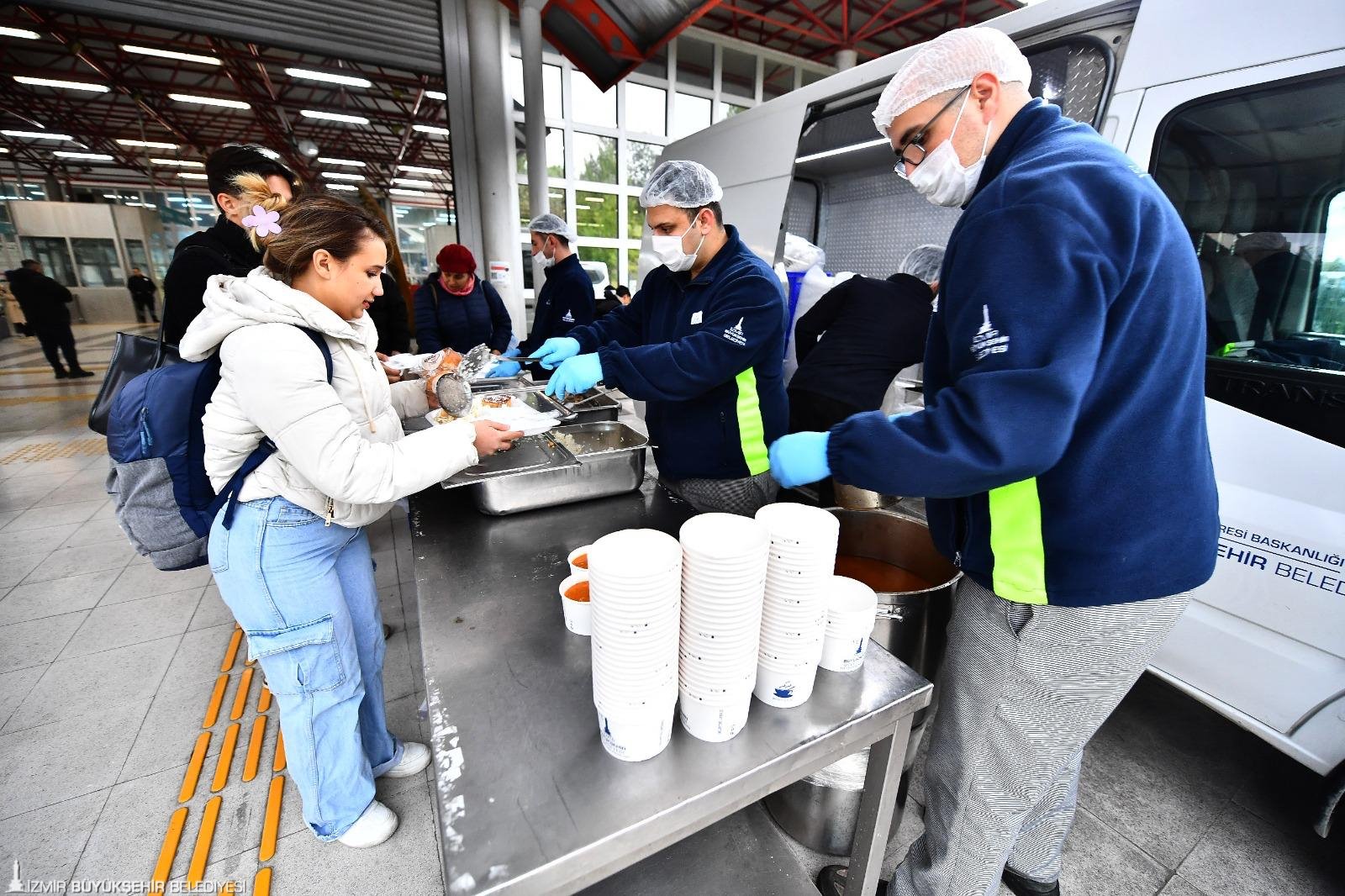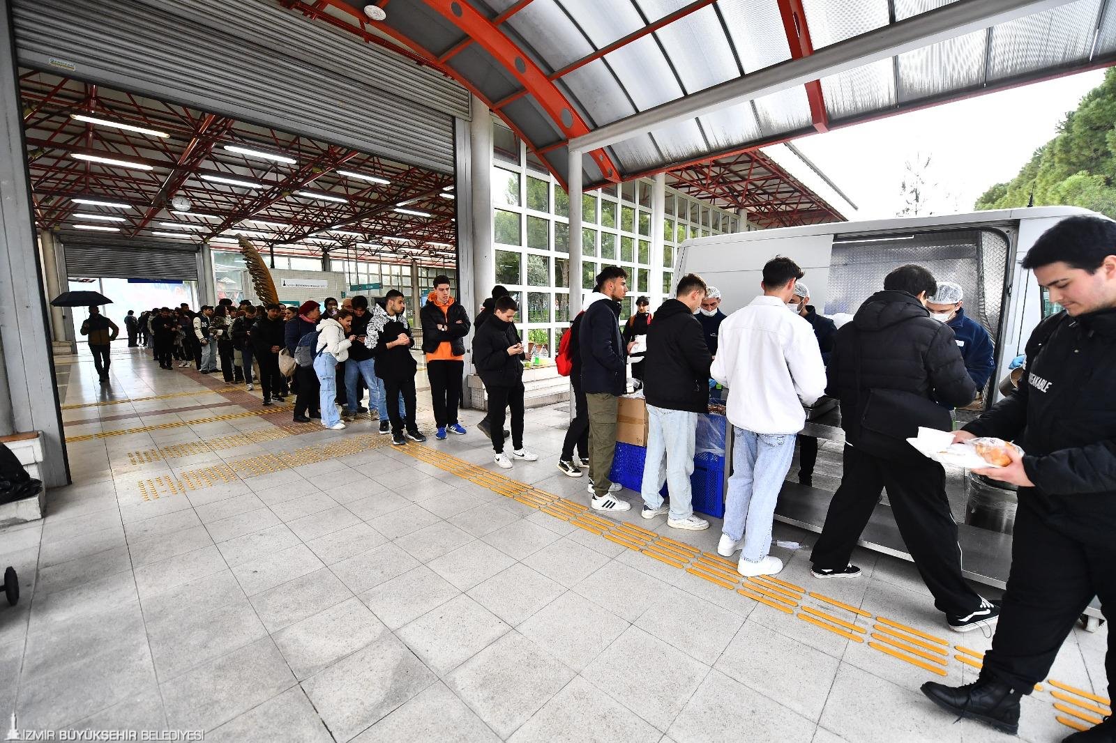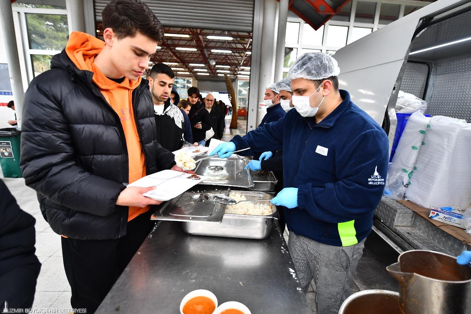 İzmir Büyükşehir Belediyesi’nin üniversite öğrencilerine sunduğu ücretsiz sıcak yemek uygulaması devam ediyor. Büyükşehir Belediyesi bünyesindeki aşevinde üretilen sağlıklı ve lezzetli yemekler, Ege Üniversitesi içi metro durağı, Katip Çelebi Üniversite içi kız yurdu yakını, Bakırçay Üniversitesi içi, Demokrasi Üniversitesi önü, İzmir Yüksek Teknoloji Enstitüsü (İ.Y.T.E.) içi kütüphane önü, Dokuz Eylül Üniversitesi Tarık Akan Gençlik Merkezi önünde bulunan 6 noktadan üniversite öğrencilerine ulaştırılıyor.