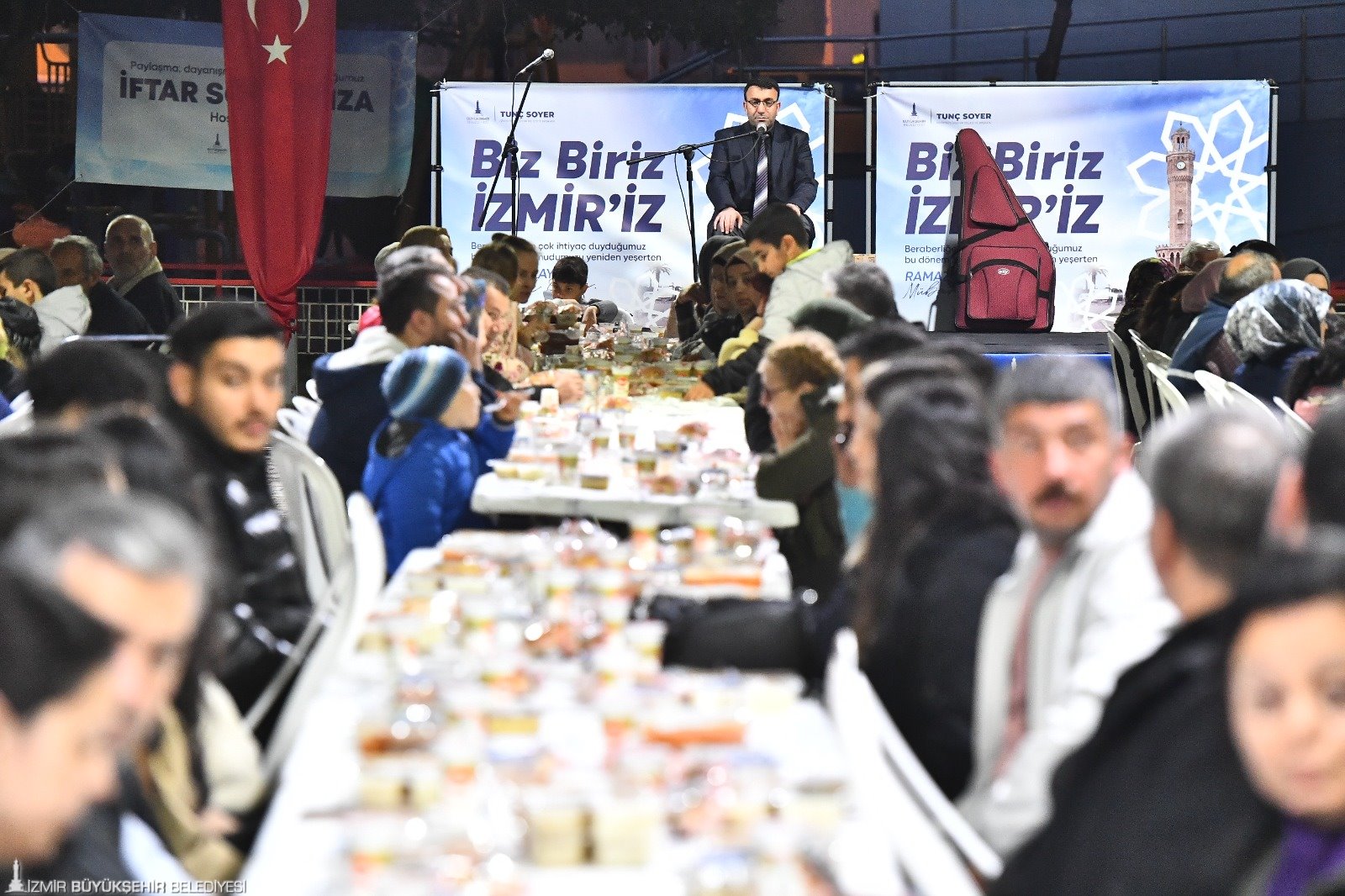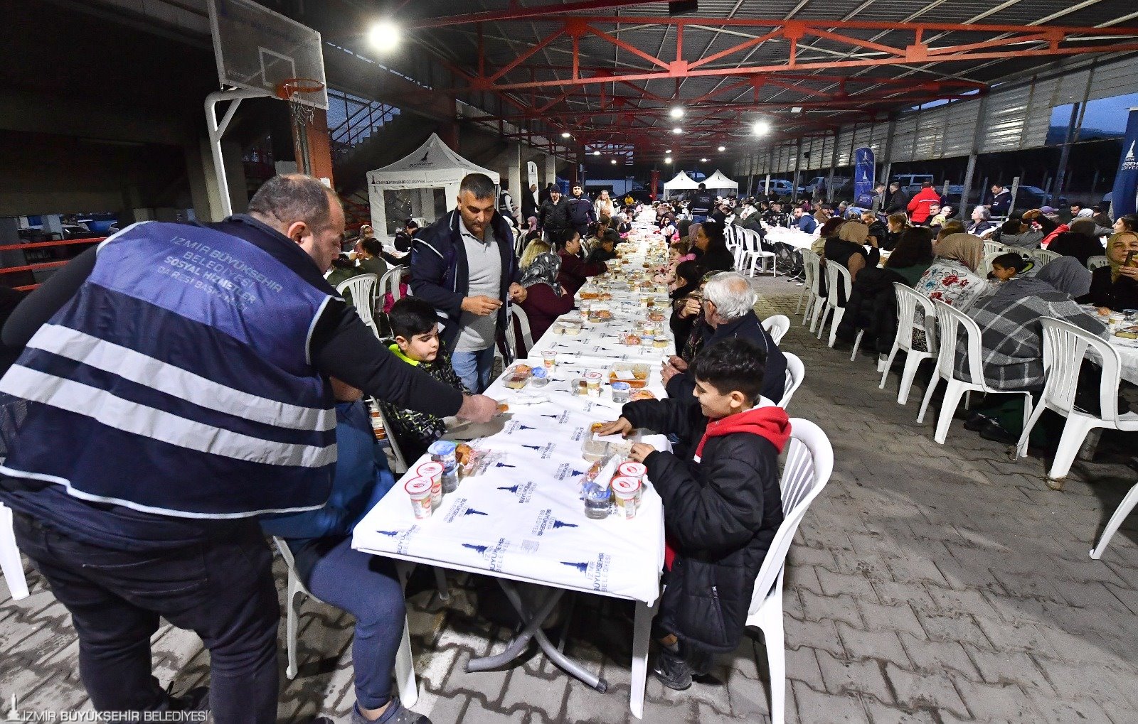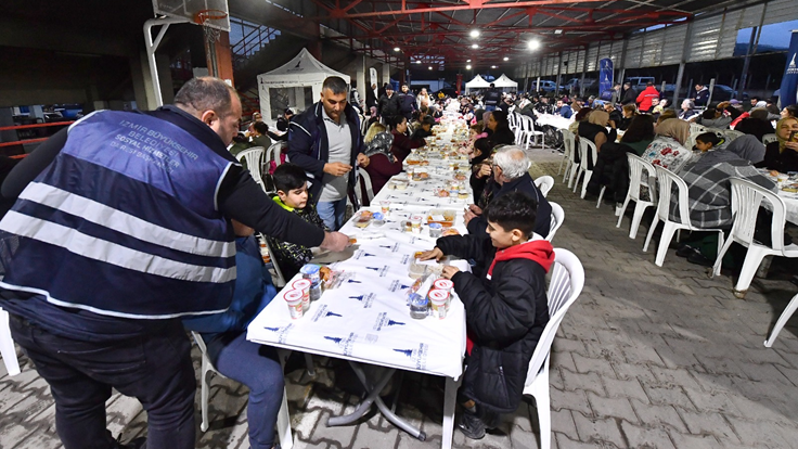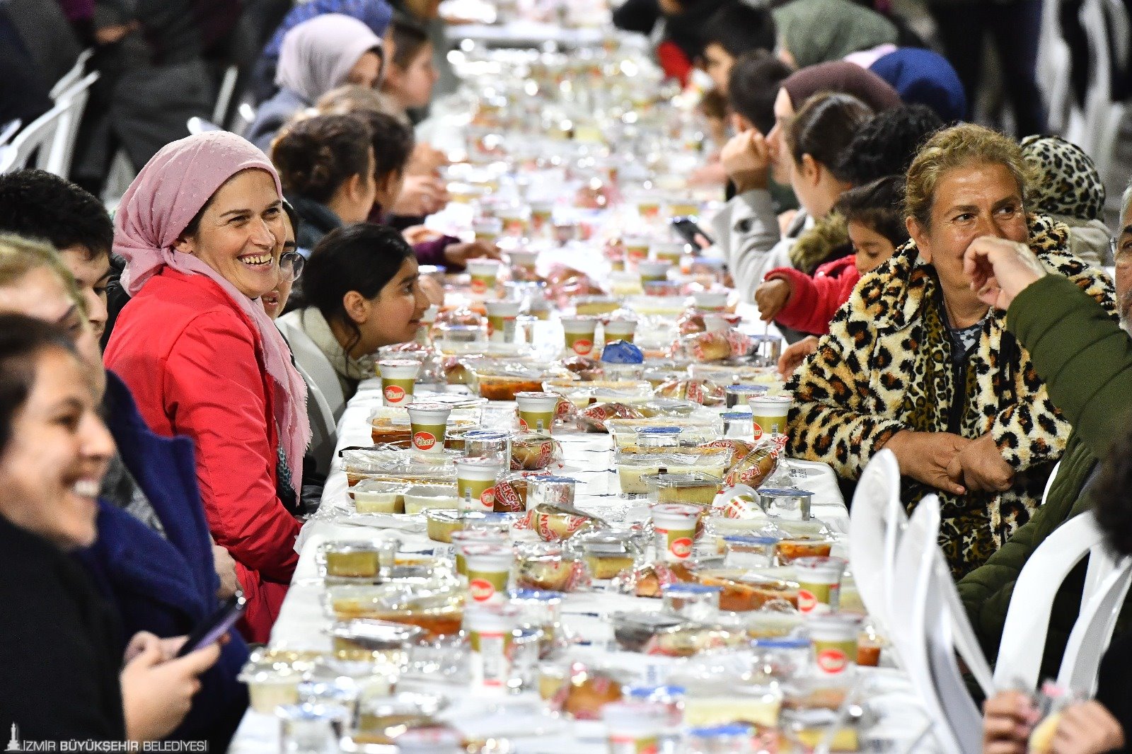 İzmir Büyükşehir Belediyesi Sosyal Hizmetler Dairesi Başkanlığı tarafından kentin dört bir yanında 521 bin kişilik iftar yemeği dağıtılacak. 12 ilçede 25 farklı noktada 70 bin kişilik iftar sofrası kurulacak. İftar programında ney dinletisi de yer alacak. 11 bölgede hizmet veren Bizİzmir Dayanışma Noktaları’nda ve 12 mahallede Ramazan ayı boyunca 450 bin kişilik iftar yemeği verilecek. Bizİzmir Dayanışma Noktaları hafta sonları da açık olacak. Şehit yakınları, gazi ve gazi yakınları için de bin kişilik iftar programı düzenlenecek. Ramazan Bayramı öncesi emeklilere ve ihtiyaç sahibi 55 bin 500 haneye İzmir Şehir Kartı aracılığıyla 45 milyon nakdi destek sağlanacak.