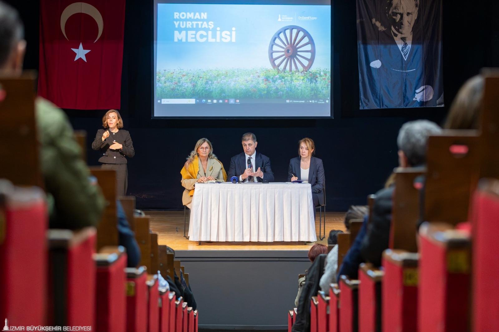 İzmir Büyükşehir Belediyesi tarafından kurulan Roman Yurttaş Meclisi, ilk toplantısını İzmir Büyükşehir Belediye Başkanı Dr. Cemil Tugay’ın ev sahipliğinde “Katılım, diyalog, ortak akıl” sloganıyla düzenledi. İzmir Sanat Toplantı Salonu’nda yapılan buluşmada Roman yurttaşları temsil eden dernek ve sivil toplum kuruluşlarının temsilcileri yer aldı. Başkan Tugay’a İzmir Büyükşehir Belediyesi Genel Sekreter Yardımcısı Prof. Dr. Pınar Okyay ve Sosyal Hizmetler Dairesi Başkanı Ela Hızlı eşlik etti.