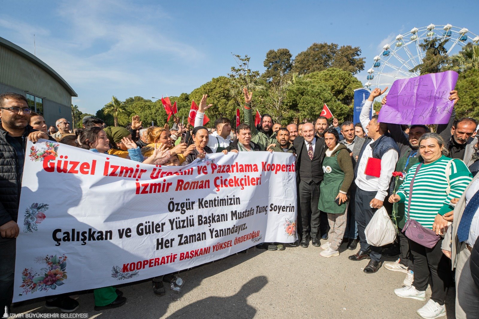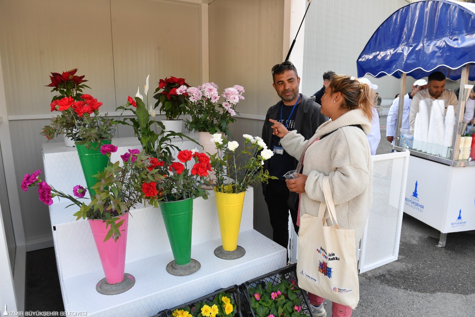 İzmir Büyükşehir Belediyesi kentte yaşayan Roman yurttaşların hayat kalitesini arttırmak için örnek bir projeye imza attı. İzmir Çiçekçiler Odası, İzmir Esnaf ve Sanatkarlar Odaları Birliği, Güzel İzmir Çiçekçiler Üretim ve Pazarlama Kooperatifi, Doğa İncisi Üretim ve Pazarlama Kooperatifi, İzmir Seyyar Satıcılar Derneği işbirliğiyle hazırlanan proje kapsamında Romanların çiçek, kestane ve mısır satışı yapabilmeleri için stantlar yapıldı. ESHOT Genel Müdürlüğü ile İzmir Büyükşehir Belediyesi Yapı İşleri Dairesi Başkanlığı tarafından hazırlanan stantlar, İzmir Büyükşehir Belediye Başkanı Tunç Soyer’in katıldığı törenle sahiplerine dağıtıldı. Kültürpark’taki törende Başkan Soyer, “İzmir seninle gurur duyuyor” sloganlarıyla karşılandı.
