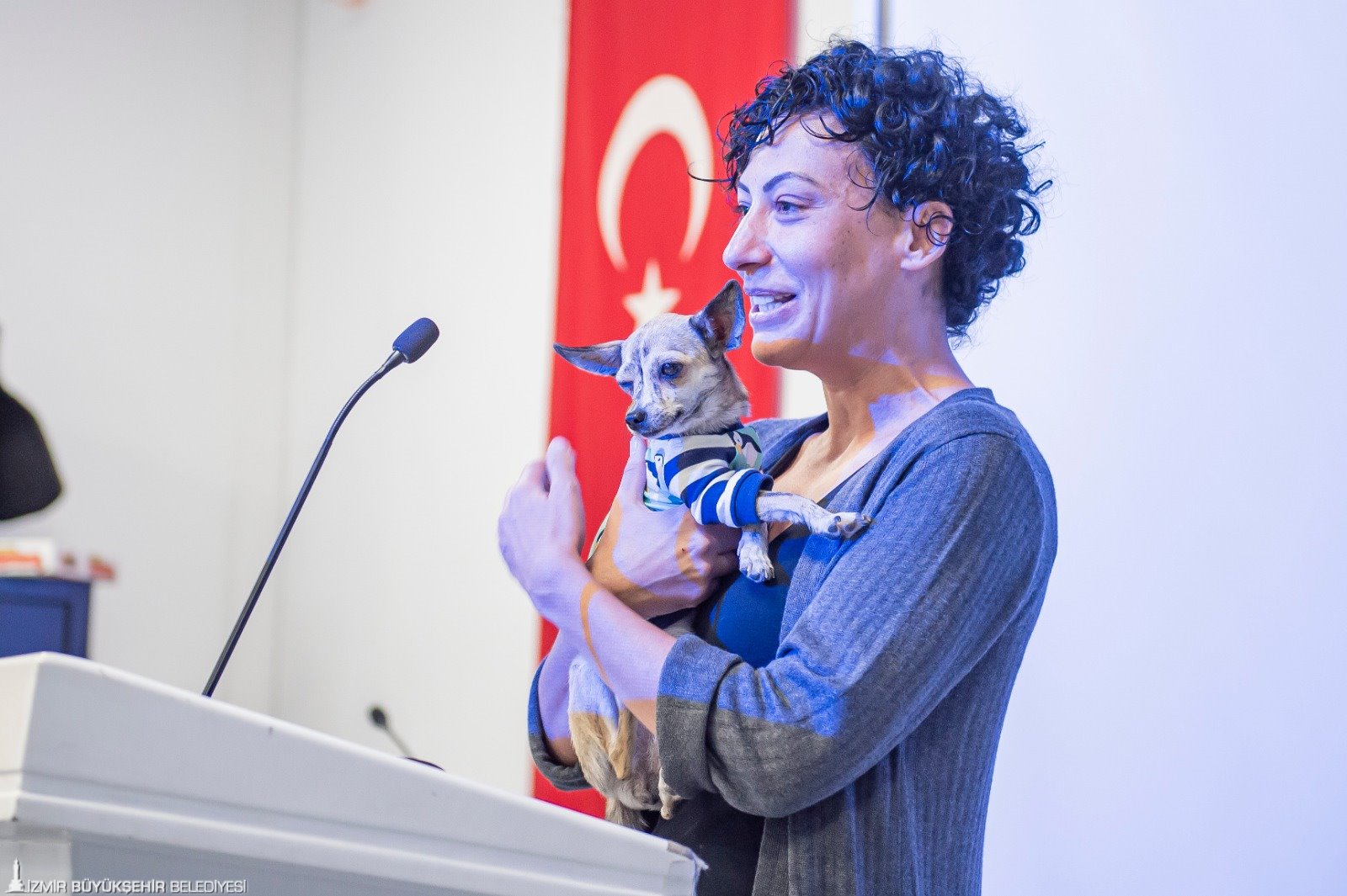 Barınağa terk edilen bir köpekle kürsüye çıkan Hayvanlar İçin Projeler Derneği Başkanı Funda Bonomo da “Başkanımıza ve belediyemize hem bu muhteşem tesisi hizmete aldıkları hem de sokak hayvanları için böyle bir çalıştay düzenledikleri için teşekkür ediyorum. Birlikte güzel çalışmalar yapacağız” diye konuştu.