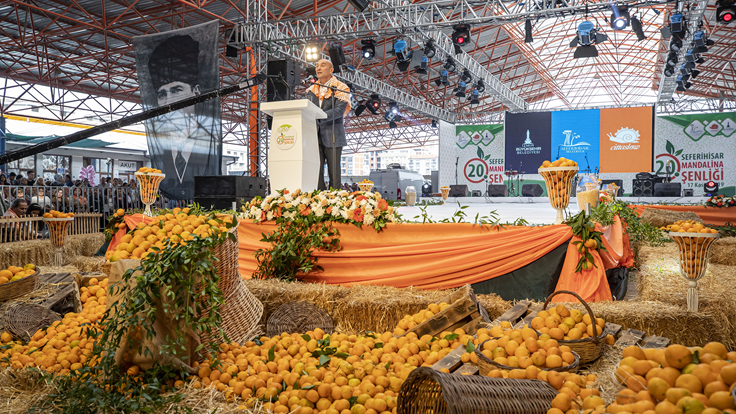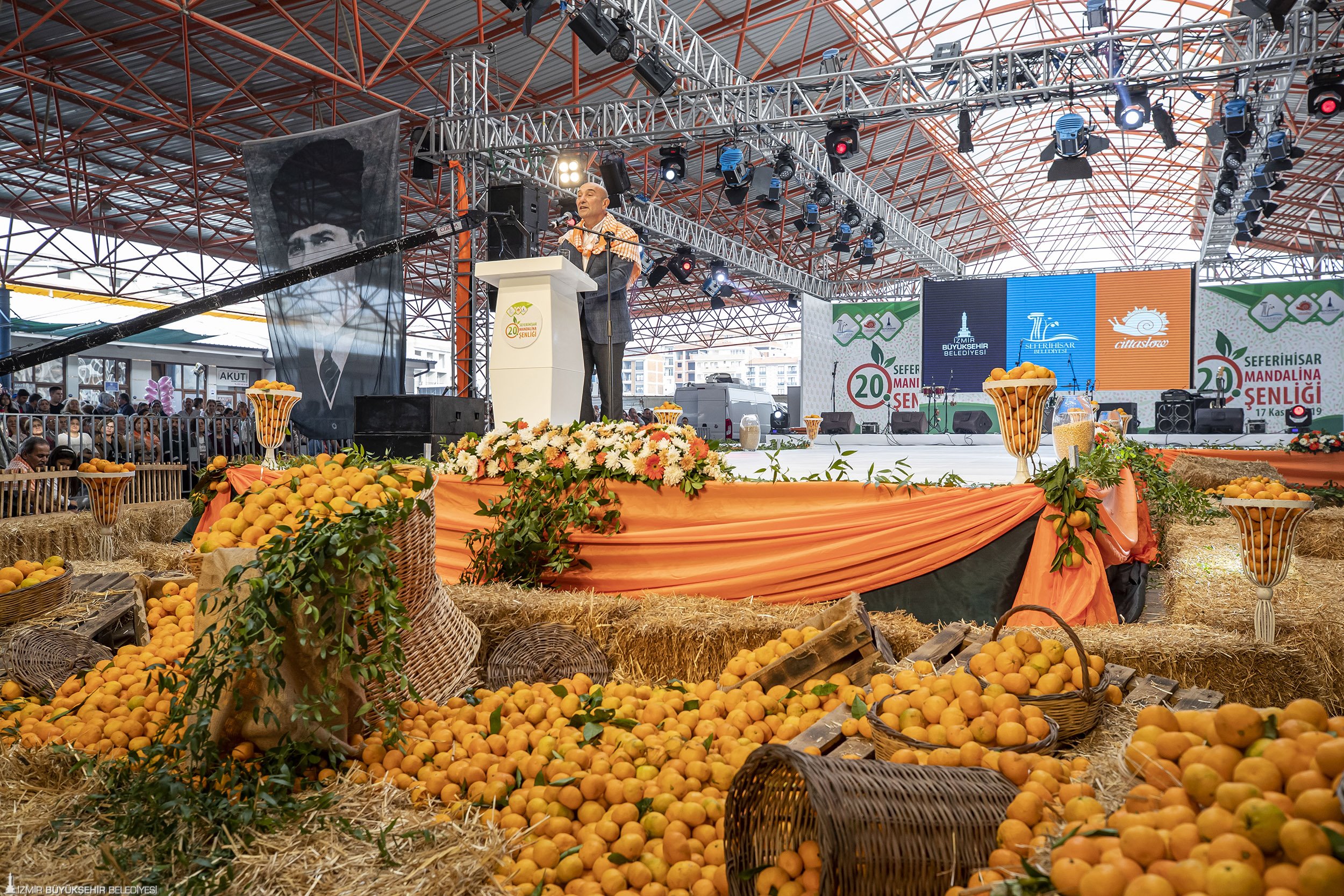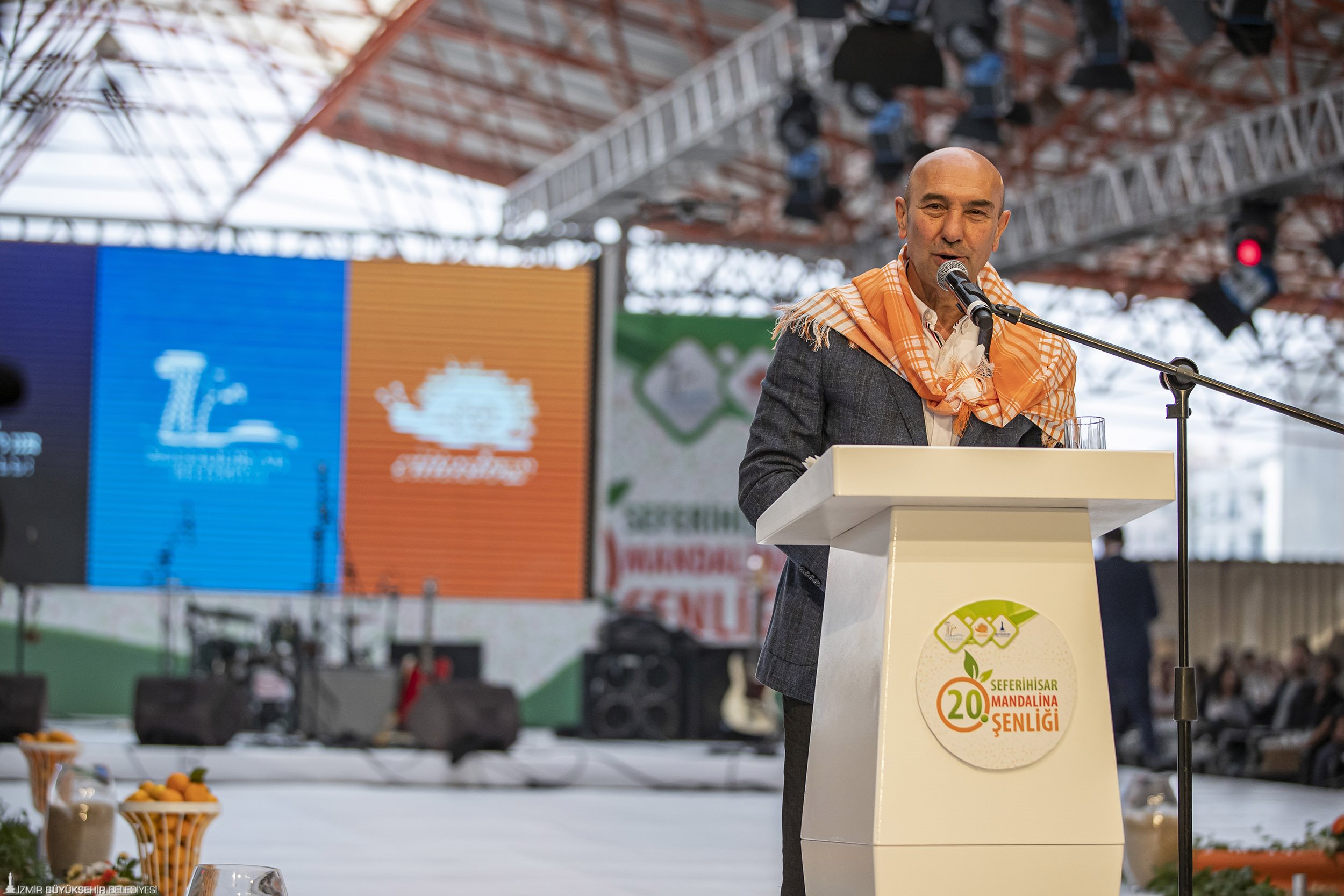 Başkan Tunç Soyer’e şenliğin bugünlere gelmesi için verdiği destekten dolayı teşekkür eden Seferihisar Belediye Başkanı İsmail Yetişkin, “Seferihisar mandalinası tarih, kültür ve ekonomi yani her şey demek. Turuncu bayramımız aslında bir direniştir. Bizi bir arada tutan değerimizdir. Mandalina piyasayı her yıl değişiyor bunlara karşılık üretmeye ayakta kalmaya devam edeceğiz” dedi.