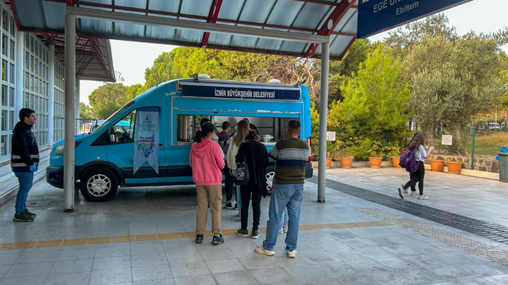 İzmir Büyükşehir Belediyesi, üniversitelileri sabahları da akşamları da yalnız bırakmıyor. Öğrencilerin ağır ekonomik şartlarda mağdur olmaması için çorba duraklarının yanı sıra, kentin 6 noktasında akşam 17:00-19:00 saatleri arasında sıcak yemek dağıtımı yapılıyor. Ailelerinden uzakta üniversite öğrenimi gören gençler için İzmir adeta sıcak bir yuvaya dönüştürülmeye çalışılıyor. Bu kapsamda 2019'dan itibaren üniversitelilere 345 bin kişilik sıcak çorba, 685 bin kişilik de sıcak yemek desteği ulaştırıldı