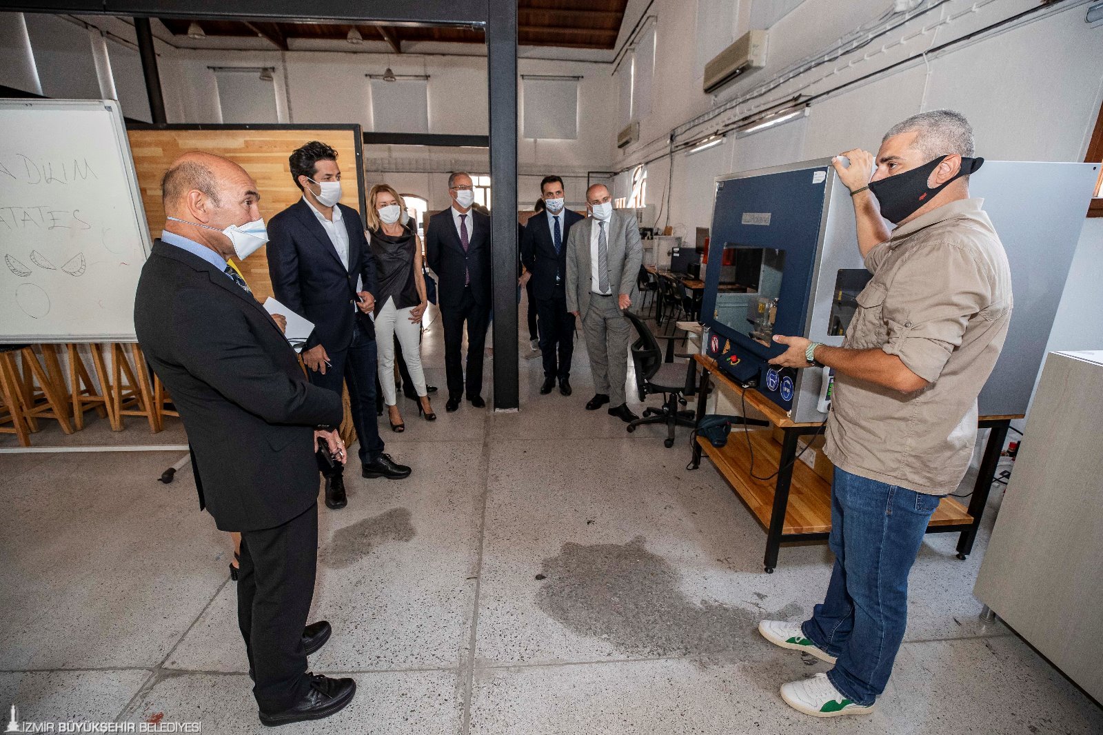 Basın toplantısının ardından İzmir Büyükşehir Belediye Başkanı Tunç Soyer, Mert Fırat, Itır Erhart ve konuklara Tarihi Havagazı Gençlik Yerleşkesi’nde kurdukları Fabrikasyon Laboratuvarı (FabLab) atölyesini ve FikrimİZ çalışmalarının yürütüldüğü merkezi gezdirdi.