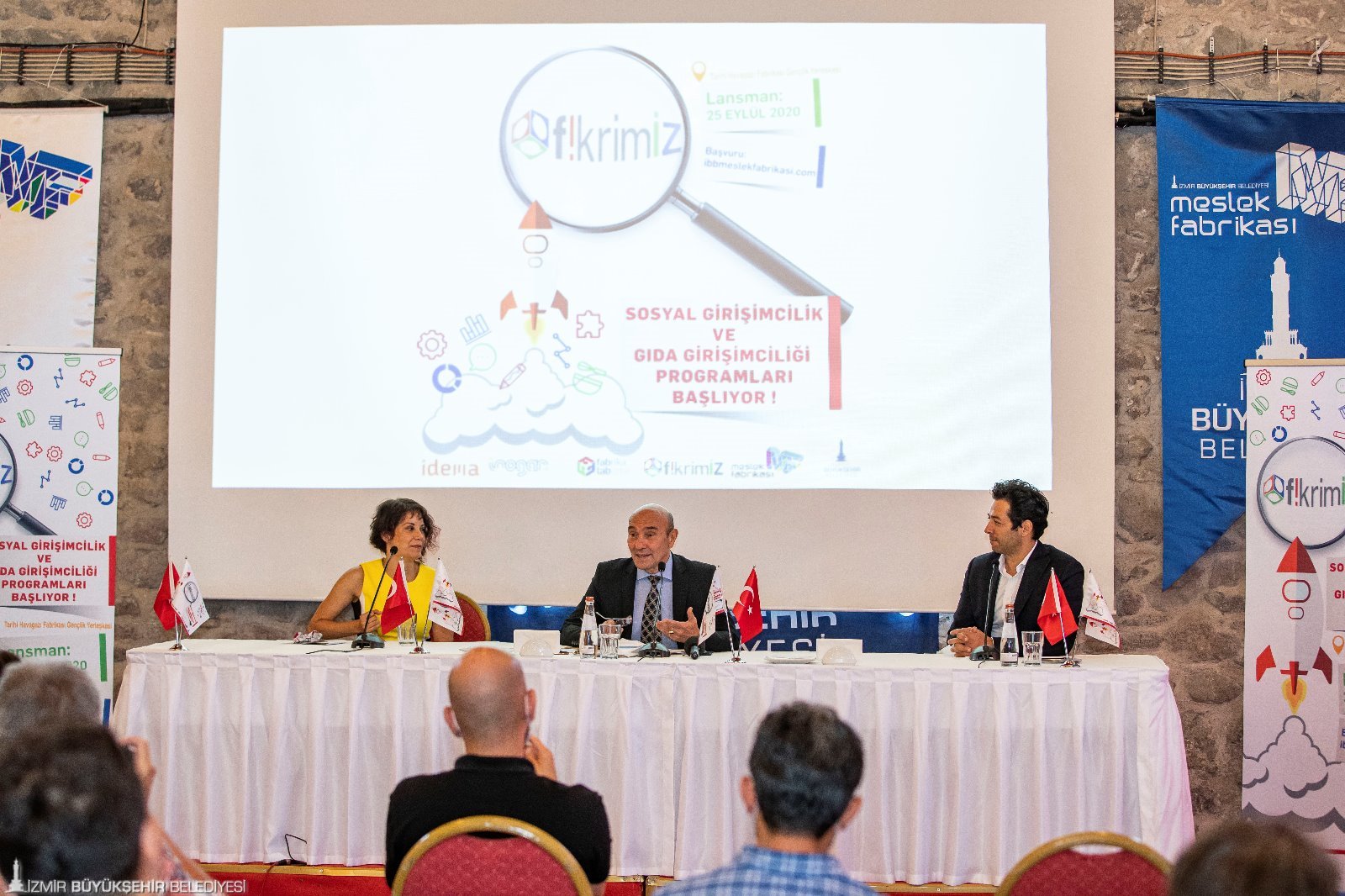 İzmir Büyükşehir Belediyesi Meslek Fabrikası bünyesinde sosyal girişimcilik ve gıda girişimciliğini kapsayan yeni bir program başlıyor. İzmir Büyükşehir Belediye Başkanı Tunç Soyer, İhtiyaç Haritası ve Yeni Nesil Girişimcilik ve İnovasyon Merkezi-İNOGAR’ın kurucu ortağı oyuncu Mert Fırat ve sosyal girişimci Itır Erhart ile birlikte kazanan girişimlerin ödüllendirileceği programı basına tanıttı.