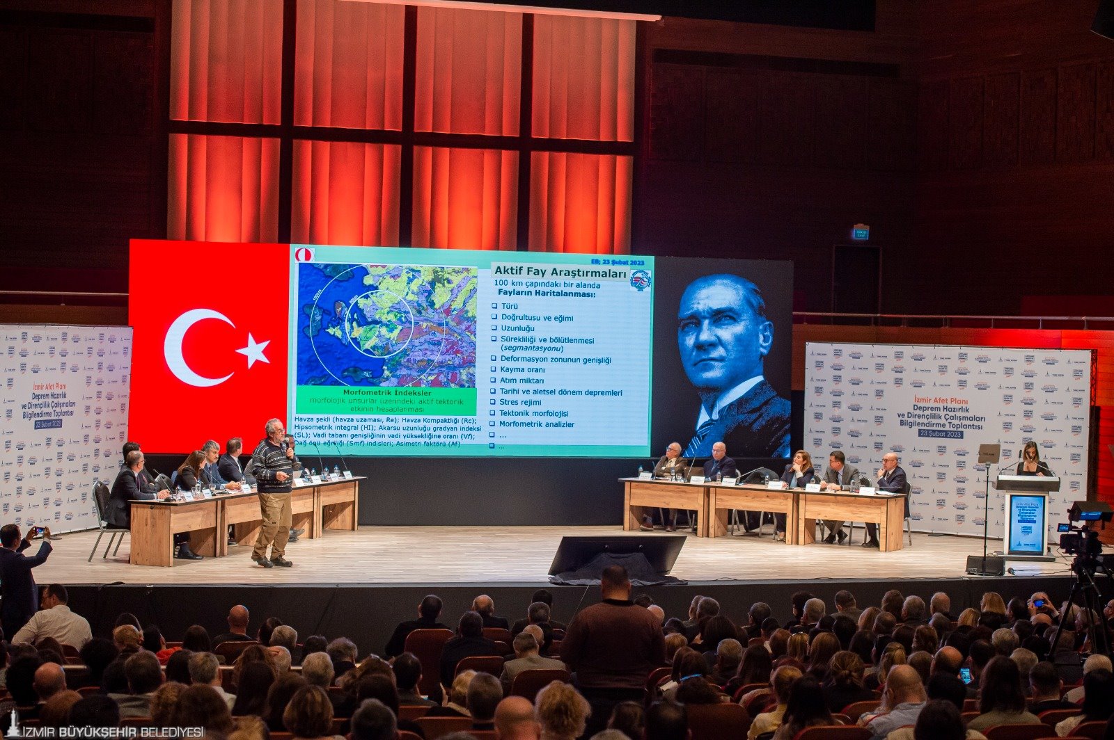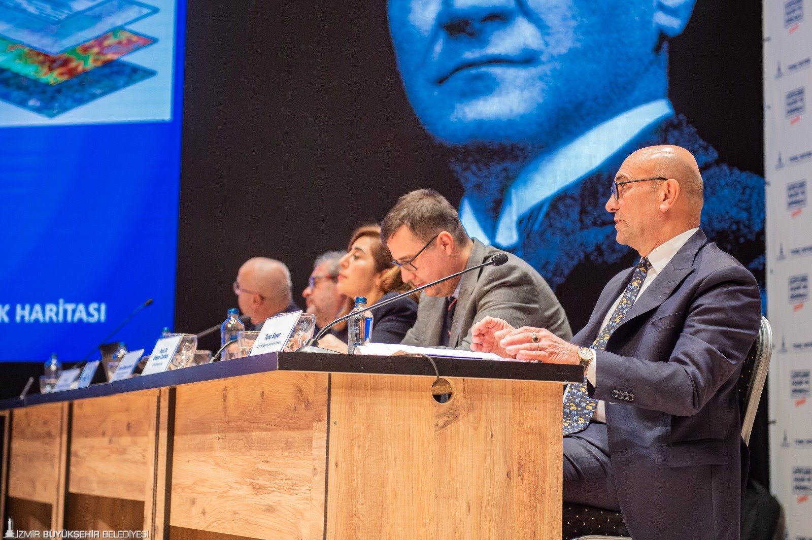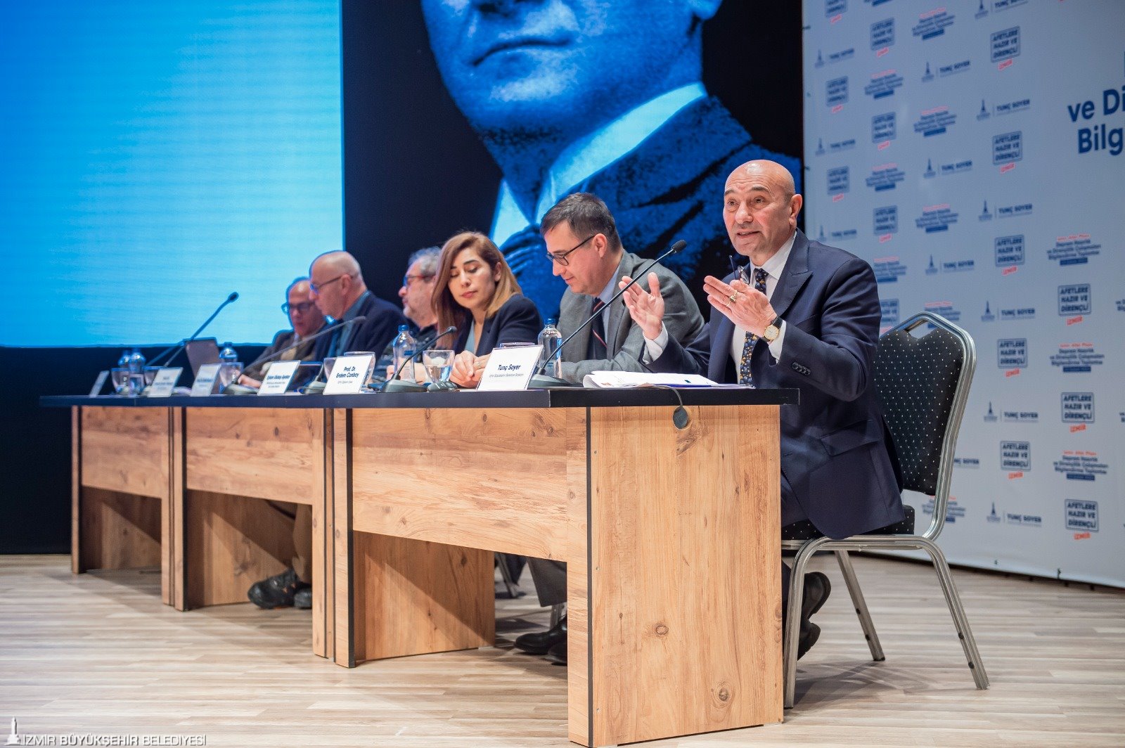 10 üniversiteden 43 bilim insanı ve 18 uzman mühendisin yer aldığı depremsellik araştırmasında görevli ODTÜ Jeoloji Mühendisliği Bölüm Başkanı Prof. Dr. Erdin Bozkurt ise, “Bu coğrafya bir deprem coğrafyası. Yüzleşmemiz gereken bir olay. Bugün de yarın da olabilir. Tunç Başkan bu konuyu dert ediniyor. Proje kapsamında birçok belediyeyle görüşmek istedik, randevu alamadık. Çok özel bir başkanınız var. İzmir'de deprem riskini tüm boyutlarıyla ortaya koyacak, örnek olacak bir proje yürütülüyor. İzmir’i etkileyebilecek fayları çalıştık. Yaklaşık 42 fay var. Bu rakamı değiştirdik, sayı daha da fazla oldu. Yakın zamanda söyleyeceğiz. Fayların jeolojik özelliklerini belirliyoruz. Denizden karotlar alıyoruz. Ve deprem tarihçesini ortaya koyacağız. Afet sadece deprem değil. İklim değişikliğiyle ilgili çalışmaları da ortaya koyacağız. Bizim yerel zemin koşullarını çok iyi bilmemiz gerek. Bunu da araştırıyoruz. Hepsinin birlikte olduğu bütünleşik bir projenin dünyada bir örneği yok. Akıl ve bilim, eğitim, doğa bilimlerini öğrenmek zorundayız. Sorumluluk, denetim, koordinasyon hepsi bu projede var” diye konuştu.
