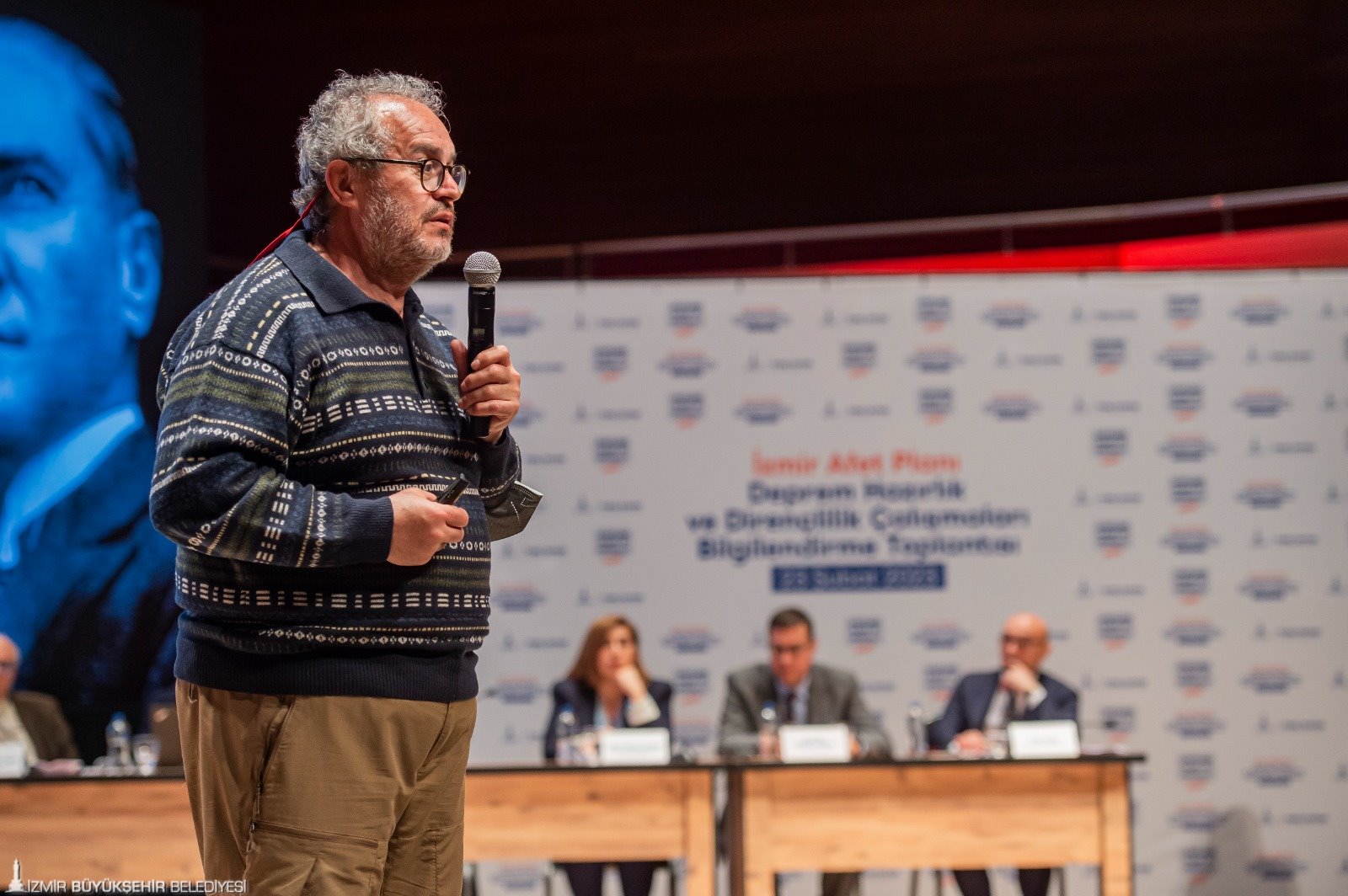 İzmir Büyükşehir Belediye Başkanı Tunç Soyer’in öncülüğünde düzenlenen “İzmir Afet Planı-Deprem Hazırlık ve Dirençlilik Çalışmaları” bilgilendirme toplantısı Ahmed Adnan Saygun Sanat Merkezi’nde (AASSM) uzmanları buluşturdu. Toplantıda İzmir Büyükşehir Belediyesi bürokratları, akademisyenler ve meslek odalarının temsilcileri kentte üç yıldır yürütülen çalışmalar hakkında bilgi verdi.