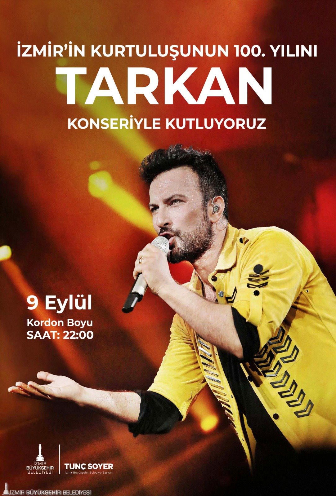 İzmir’in Kurtuluşu’nun 100. Yılı, Atatürk'ün İzmir'e ayak bastığı 10 Eylül akşamı ise çok özel bir programla taçlandırılacak. Müziğimizin sevilen isimleri, İzmir Kültürpark Çim Alan’da, Adnan Saygun Senfoni Orkestrası eşliğinde, Tuluğ Tırpan’ın müzik direktörlüğünde İzmir’in birbirinden güzel türkülerini seslendirecek.