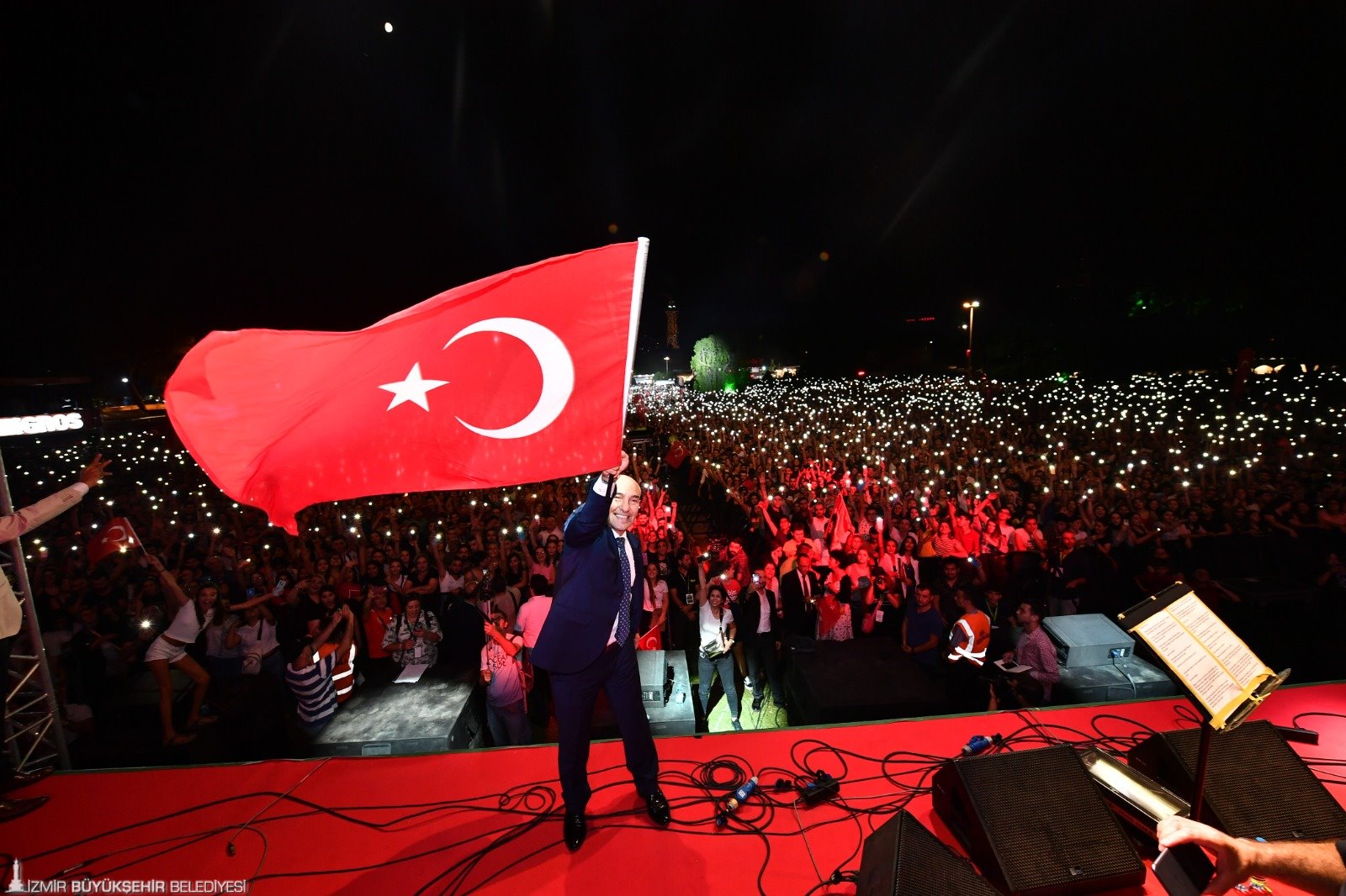 Saatler 20.30’u gösterdiğinde Türkiye’de bugüne dek sergilenmiş en büyük sahne şovlarından biri geri sayımı başlayacak. DJ Ersin’in alandakileri coşturacak performansının ardından Gündoğdu Meydanı'nda, 180 dansçının katılımıyla artırılmış gerçeklik destekli işgal ve kurtuluşun canlandırılacağı interaktif tiyatral şov sahnelenecek. Toplam 1300 metrekare led ekranın kullanılacağı şov, bu bakımdan Türkiye tarihinde yapılan en büyük prodüksiyon olacak. Bu etkinliğin ardından megastar Tarkan da yine Kordonboyu'nda konser vererek müzikseverlere unutulmaz saatler yaşatacak.