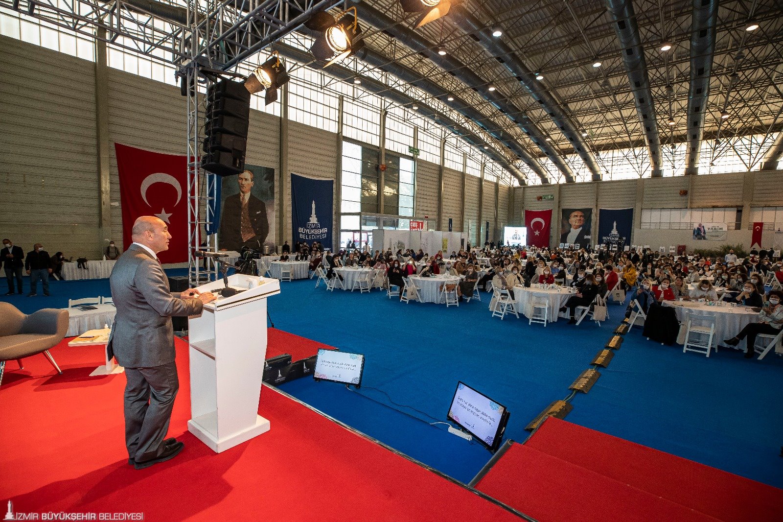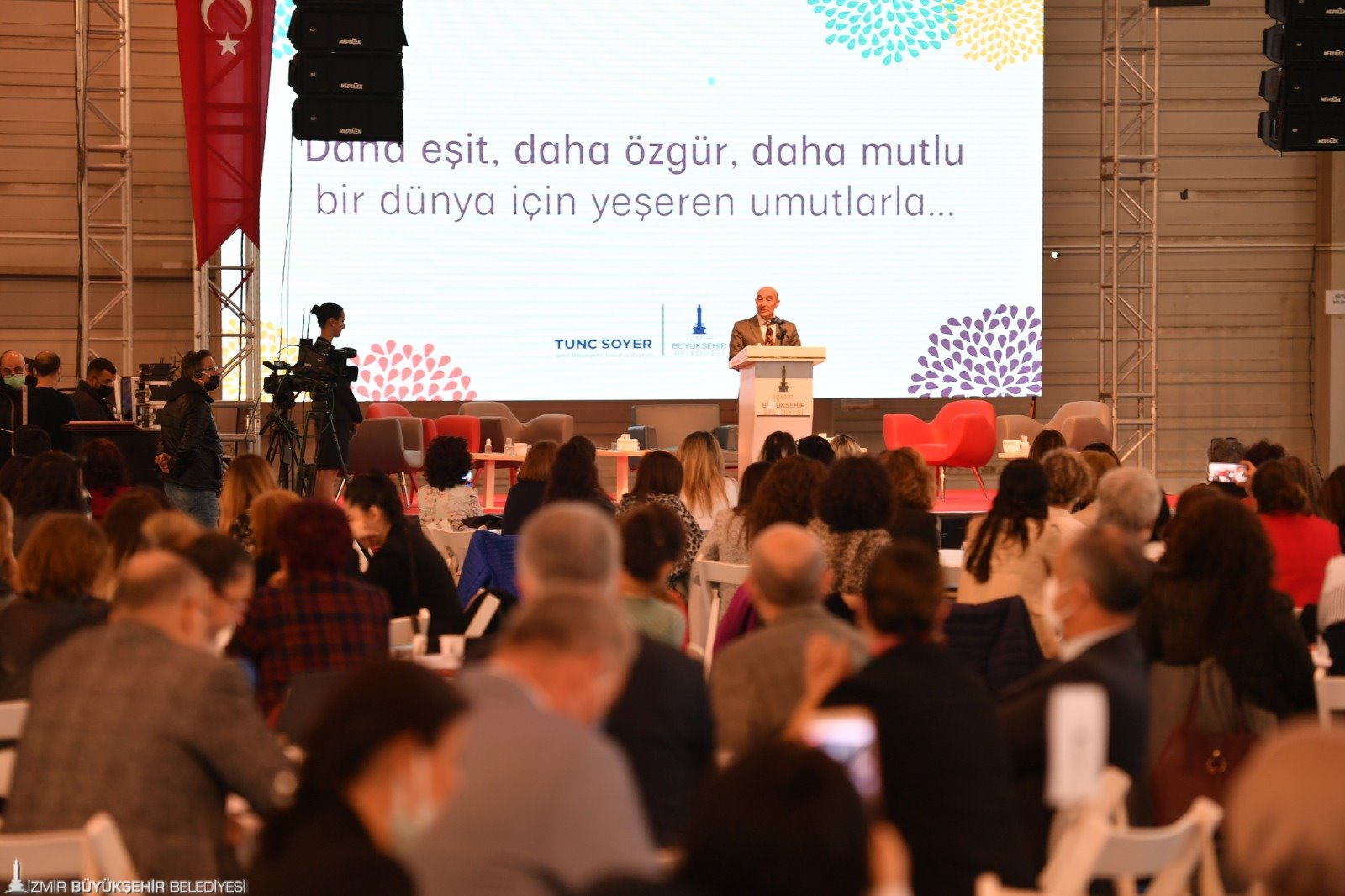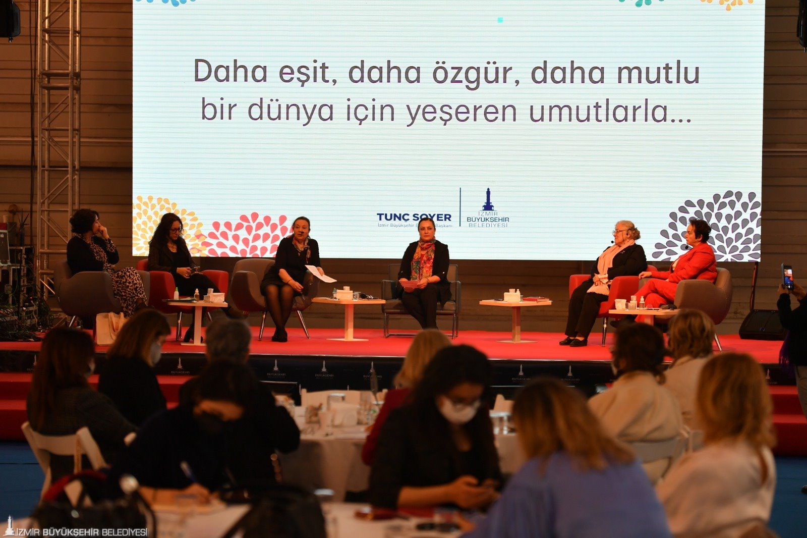 İzmir Büyükşehir Belediyesi Kent Konseyi Başkanı Saniye Nazik Işık ise 27 Şubat’ta Büyükşehir’in de katılımıyla yapılan Kadın Politikaları ve Yerel Yönetimler Çalıştayı’nın sonuçlarını paylaşarak şunları söyledi: “Yerel Eşitlik Eylem Planı için bir ön hazırlık çalışması yaptık. Bu çalıştayda 12 ilke ve 82 öneri geliştirildi. Bu 82 ilke içinde örneğin İzmir’de okuryazar olmayan kadın kalmaması, her hal ve şarttaki kadına erişen hak temelli eğitimler yapılması, arka sokaklar için seyyar mobil hizmetlerin artması, her türlü bakım hizmetinin mahallerde yakın noktalarda olması, yoksullukla mücadelede kadınlara öncelik verilmesi, ilçe belediyelerinin kadın sığınma evinin sayısının arttırılması için önemli sonuçlar ortaya çıktı.”