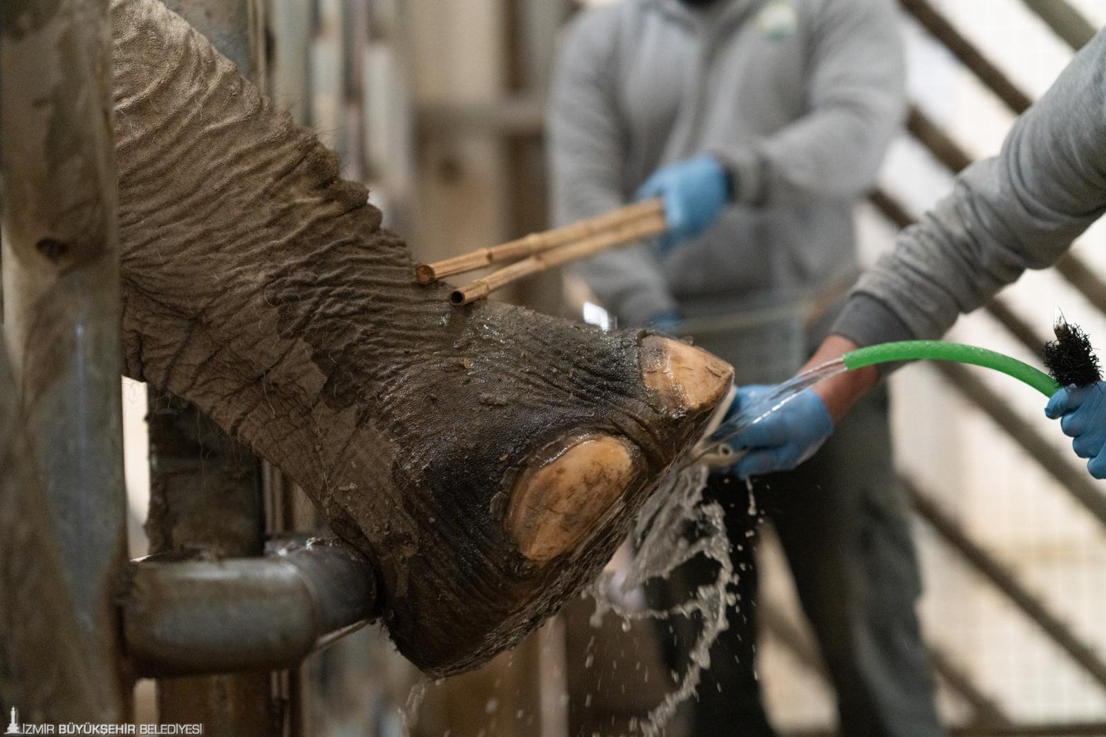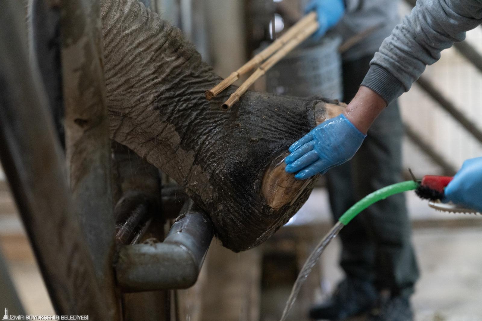 İzmir’in simge fili Pak Bahadır’ın geçmişte yaşadığı sağlık sorunlarının, bugünkü bakım anlayışının temelini oluşturduğunu ifade eden İzmir Büyükşehir Belediyesi Veteriner İşleri Dairesi Başkanlığı Doğal Yaşam Parkı Şube Müdürü Biyolog Serkan Eğrilmez, Pak Bahadır’ın ömrünün yaklaşık 50 yılını beton zemin üzerinde geçirdiğini hatırlattı. O dönem yeterli bilgi ve olanakların bulunmaması nedeniyle ayaklarında oluşan çatlakların zamanla ciddi yaralara dönüştüğünü söyleyen Eğrilmez, bu durumun hayvanın hareket kabiliyetini kısıtladığını ve ölümüne giden süreci başlattığını aktardı. Pak Bahadır’ın kaybından bir yıl sonra, Begümcan’a arkadaş olması amacıyla Winner’ın İzmir Doğal Yaşam Parkı’na getirildiğini belirten Eğrilmez, “Bu deneyim bize filler için ayak bakımının ne kadar hayati olduğunu acı bir şekilde gösterdi. Bakım süreçleri artık bilimsel kriterler doğrultusunda düzenli olarak yürütülüyor. Ayrıca barınak zeminleri doğal yapıya uygun hâle getirildi” diye konuştu.