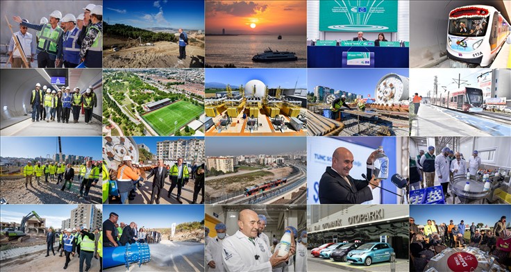 Başkan Tunç Soyer, 2019 yılındaki seçim beyannamesinde yer alan 165 projenin 144’ünü tamamlayarak yüzde 87 başarı oranına ulaştıklarını, ayrıca 15 ek proje hayata geçirdiklerini hatırlatarak “2019 yılında göreve gelirken verdiğimiz sözlerin bugün tamamının arkasında durmanın, İzmir için vaat ettiklerimizden de fazlasını yapmanın gururunu yaşıyoruz. Yaklaşık 5 yıl önce İzmir için çıktığımız yolculukta neleri başardığımızı, hangi zorlu hedeflere ulaştığımız gördükçe geleceğe yönelik cesaretimiz de artıyor. Afetlere, krizlere, tüm engellere rağmen 28 milyar liralık yatırımı hayata geçiren İzmir Büyükşehir Belediyesi artık çıtayı çok daha yükseklere çıkardı. Önümüzdeki 5 yıl daha da büyük hedeflere koşacağız. Tarihi yatırımlarla tüm altyapı sorunlarını çözmüş bir kent olarak artık dünya vitrinine çıkmaya hazırız. 2024’ten itibaren İzmir yeni bir çehre, yeni bir vizyonla ışığı sınırlarımızı aşan bir yıldız haline gelecek” dedi.
