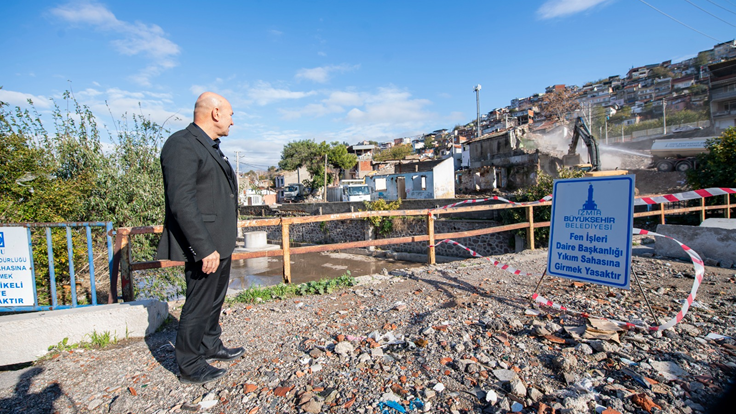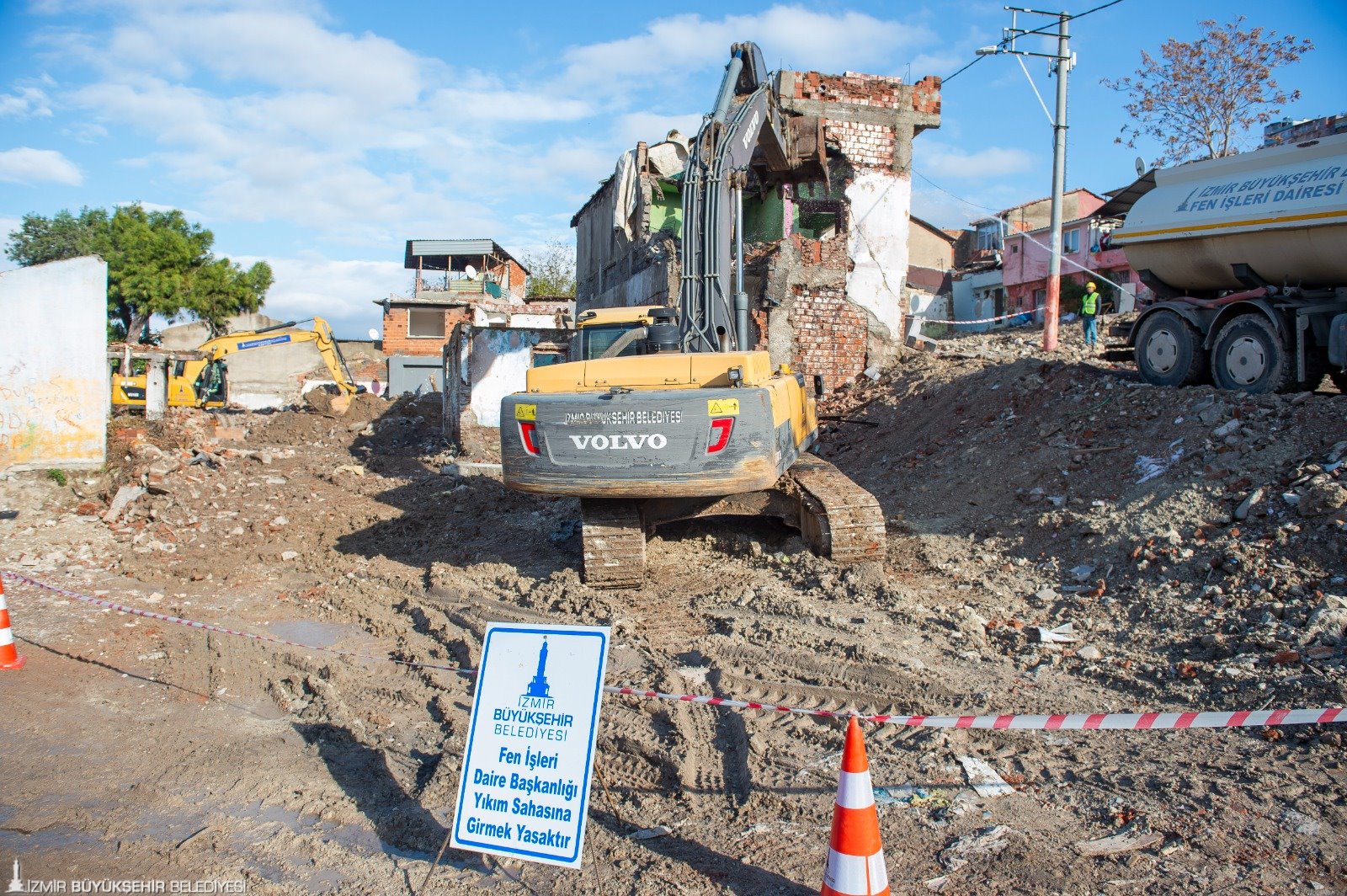 İzmir Büyükşehir Belediye Başkanı Tunç Soyer, yıkım çalışmalarının sürdüğü Yeşildere’de incelemelerde bulundu. Soyer, “Ekonomik ömrünü tamamlayan yapılar yıkılıyor. Hızla çalışmalar sürecek. Burada İzmir’in siluetini değiştirecek tarihi bir proje hayata geçirilecek” dedi.